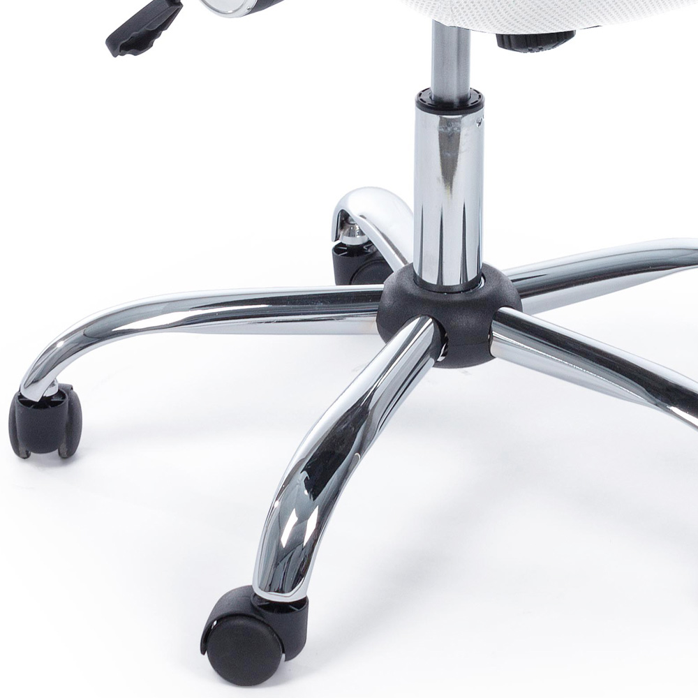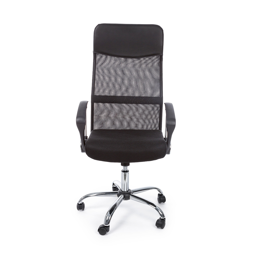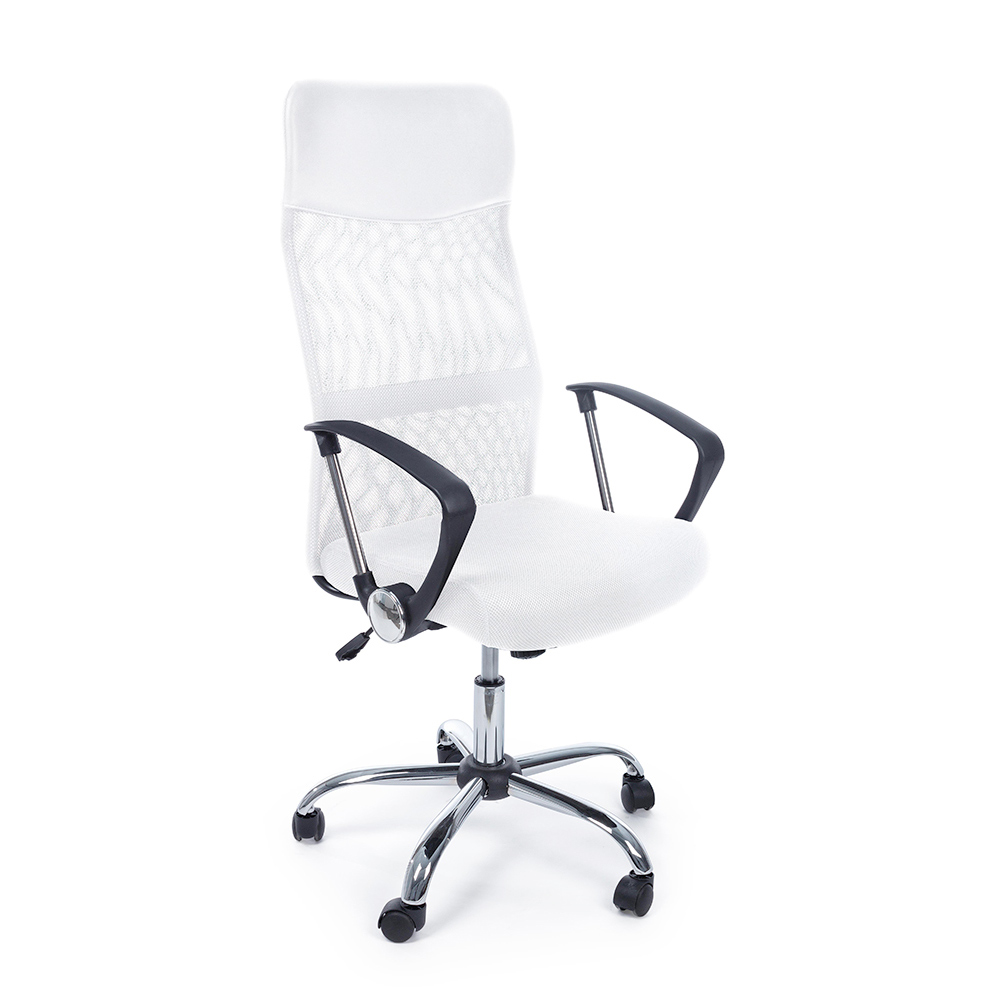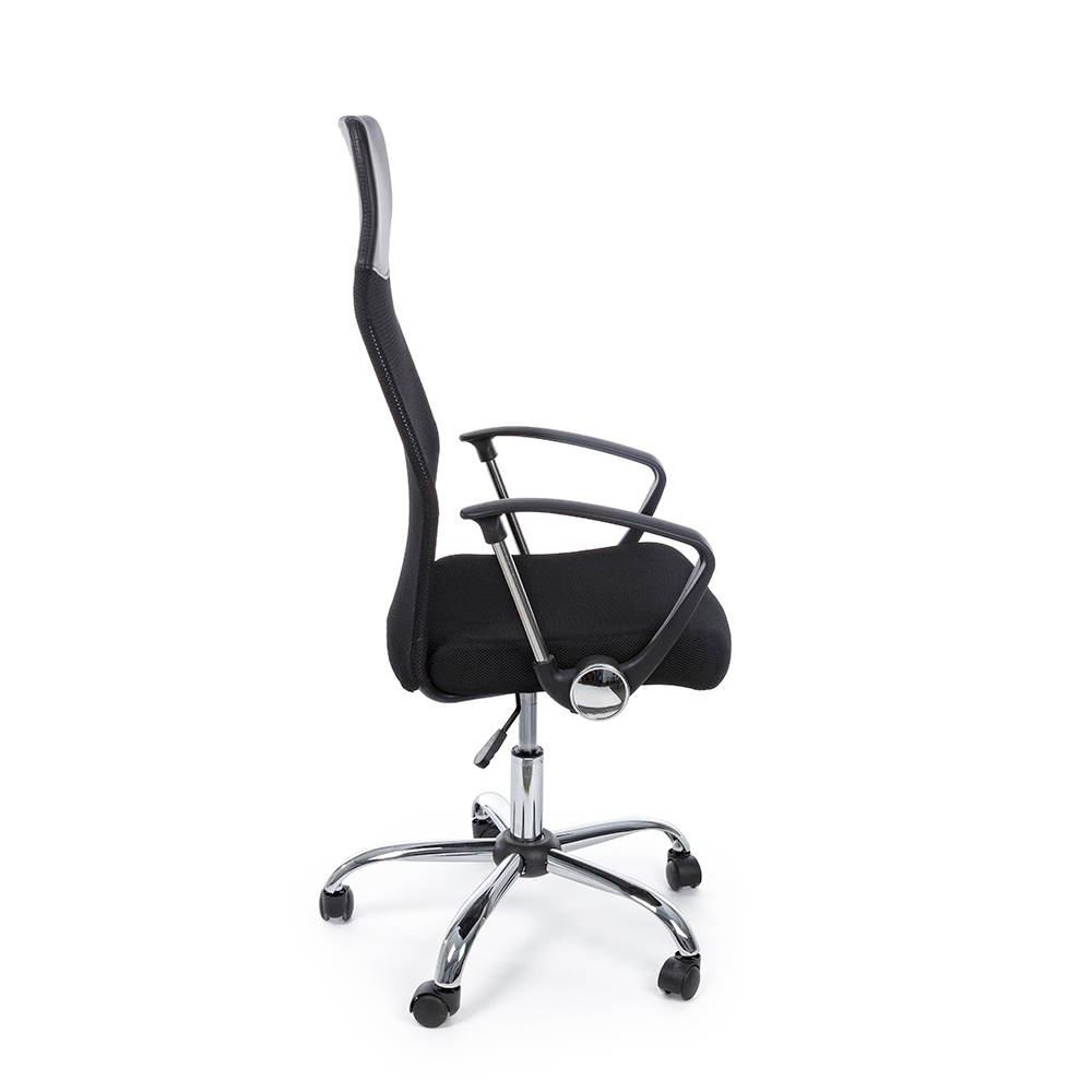Acest fotoliu de birou este realizat cu o bază solidă din oțel cromat cu diametrul de 60 cm și roți din nailon . Scaunul reglabil pe inaltime este captusit siacoperit înȚesătură 100% poliester și țesătură plasă cucotiere din plastic (polipropilena) si otel cromat. Proiectare pentru asamblare.