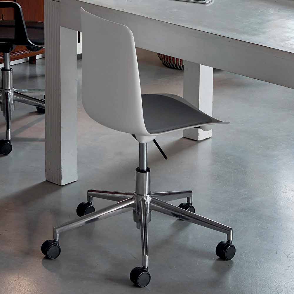 Scaun de birou din aluminiu lustruit și polipropilenă cu roți Fabricat în Italia, 2 bucăți.