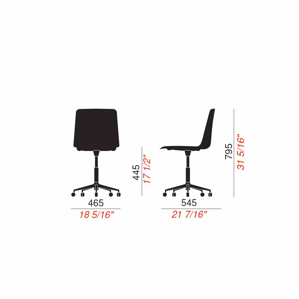 Charita este alcătuită dintr-un scaun din polipropilenă disponibil în 7 culori diferite și o structură din aluminiu lustruit, dotată și cu o bază pivotantă pentru un confort mai mare și o funcționalitate mai mare.