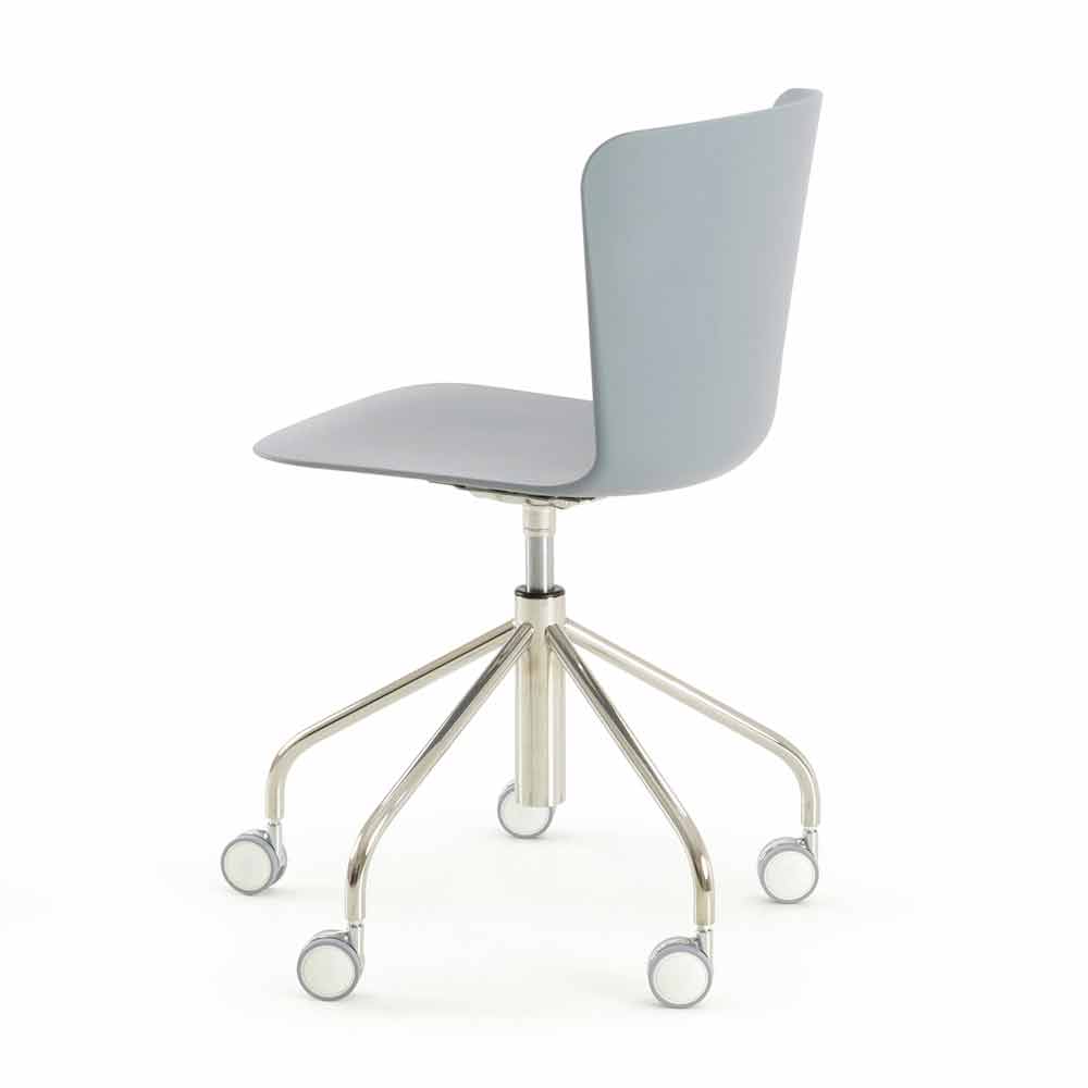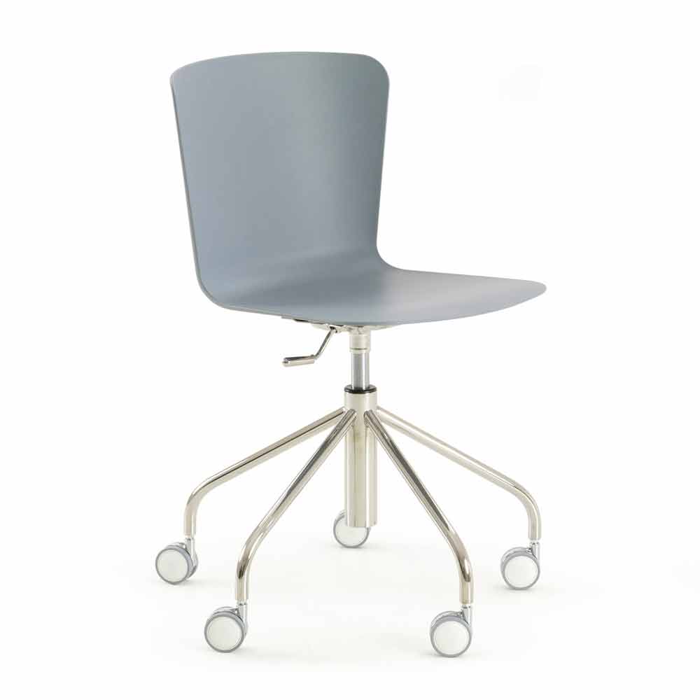 Scaun de birou modern fabricat în Italia cu carcasă din polietilenă și structură metalică cromată cu 5 spițe , pivotant și reglabil pe înălțime cu roți.