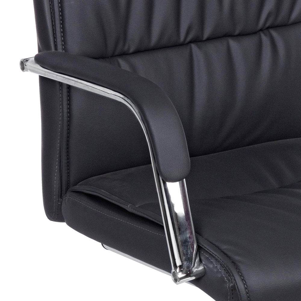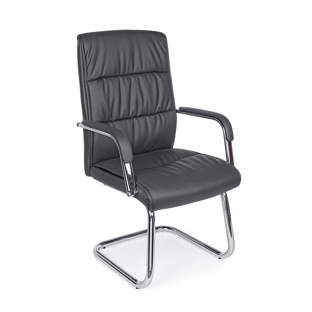 Acest fotoliu de birou este realizat cu o bază solidă din oțel cromat și sezut și spătar căptușite cu imitație de piele . Cotiere din otel cromat cu acoperire din imitatie de piele. Proiectare pentru asamblare.