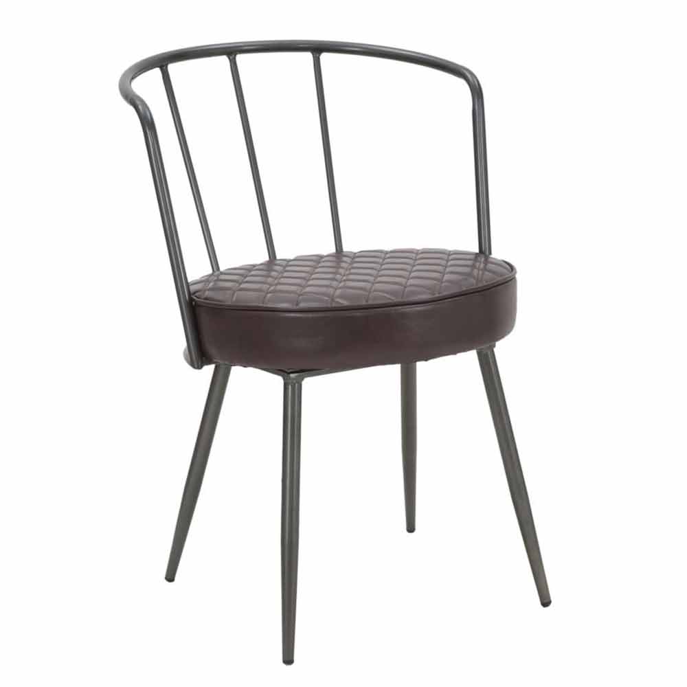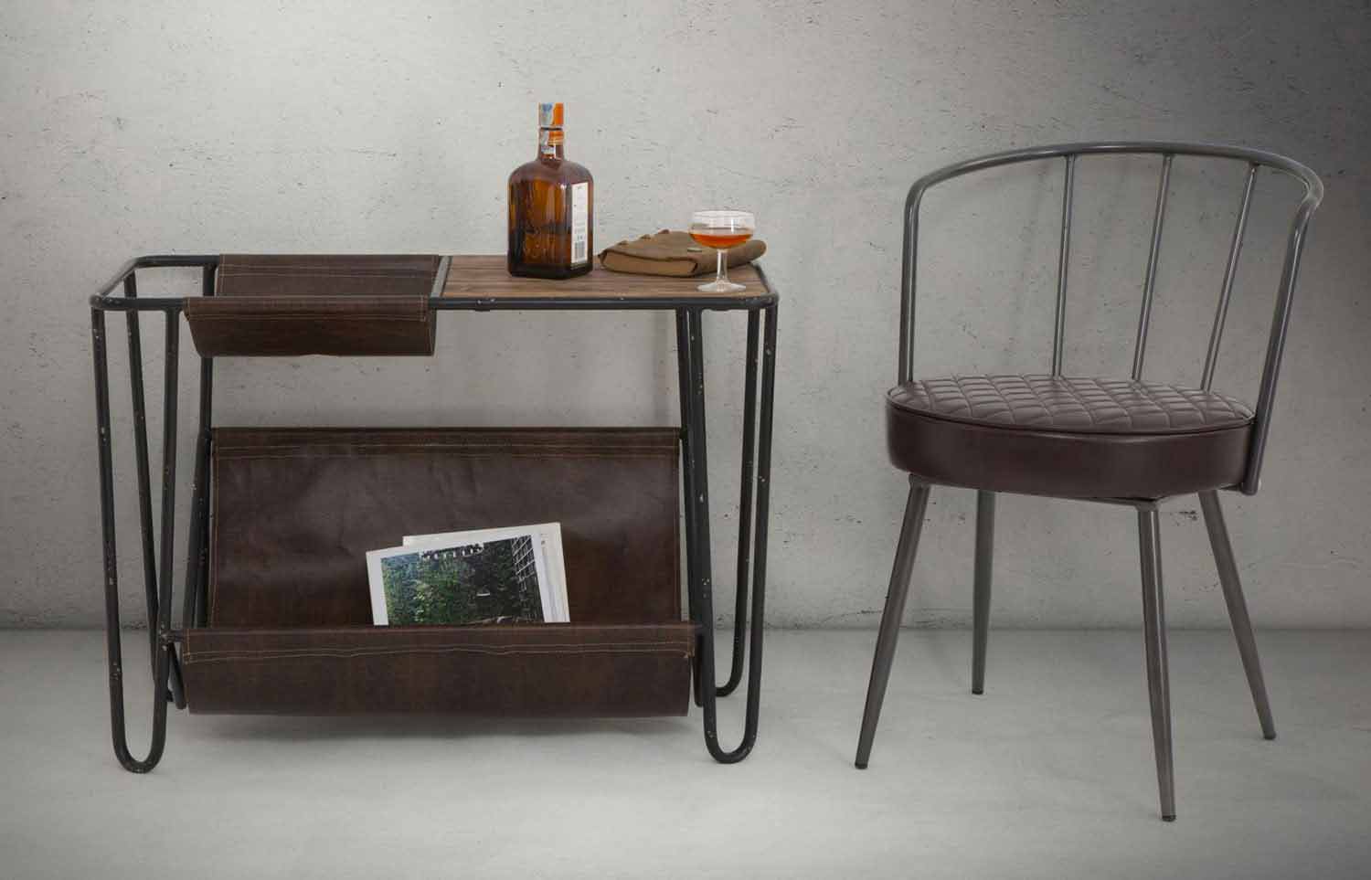 Fotoliu modern de design industrial din fier și piele ecologică.
