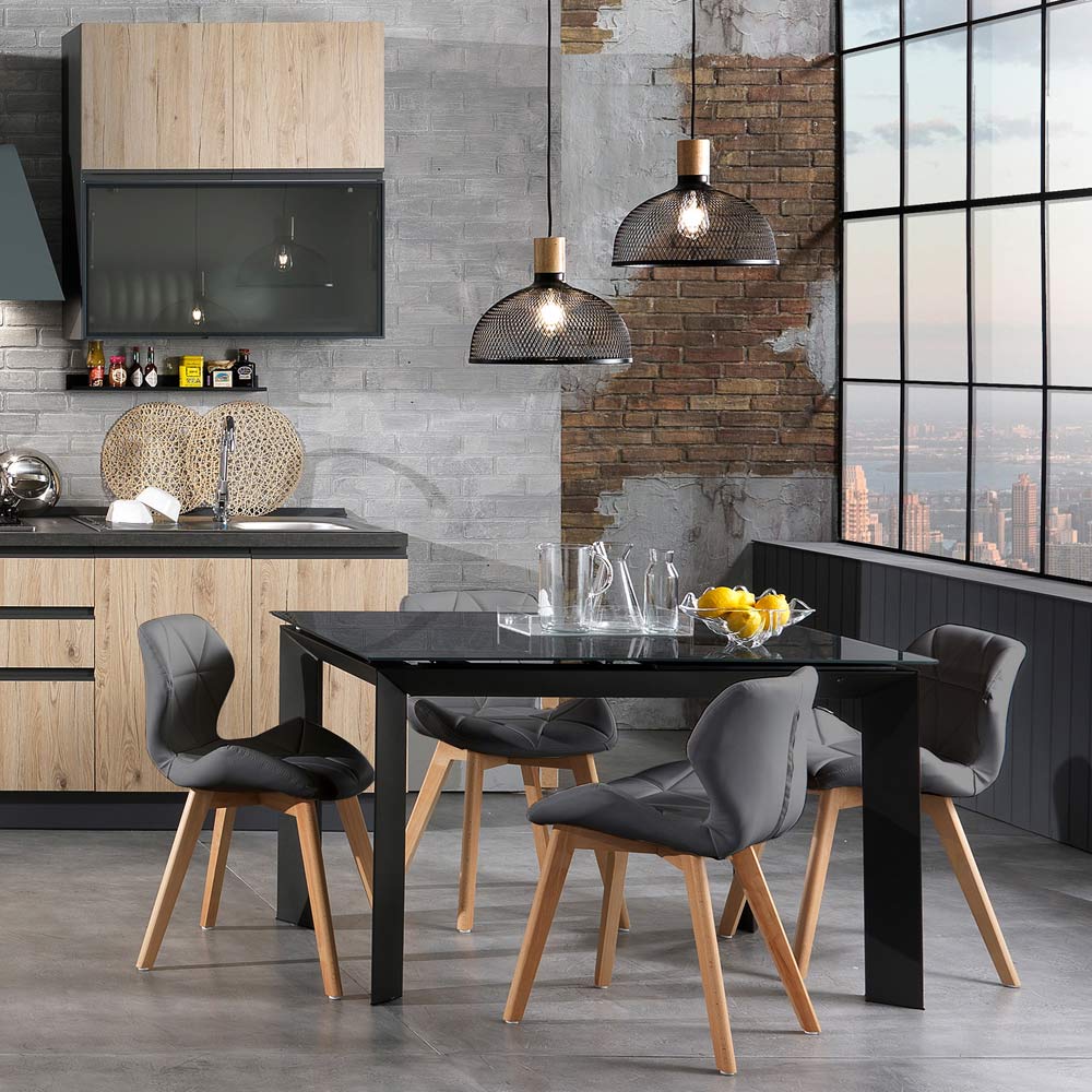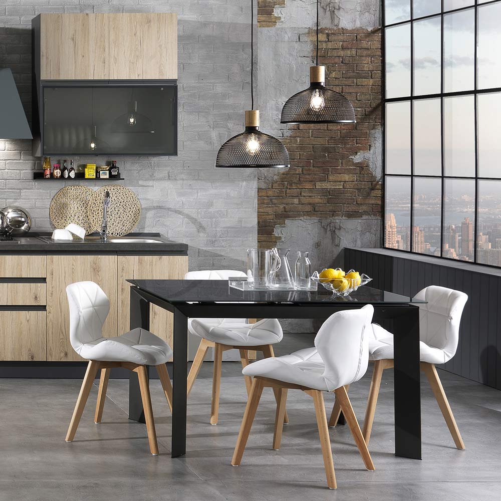 Scaun modern de sufragerie din lemn imbracat in piele sintetica din 2 piese.