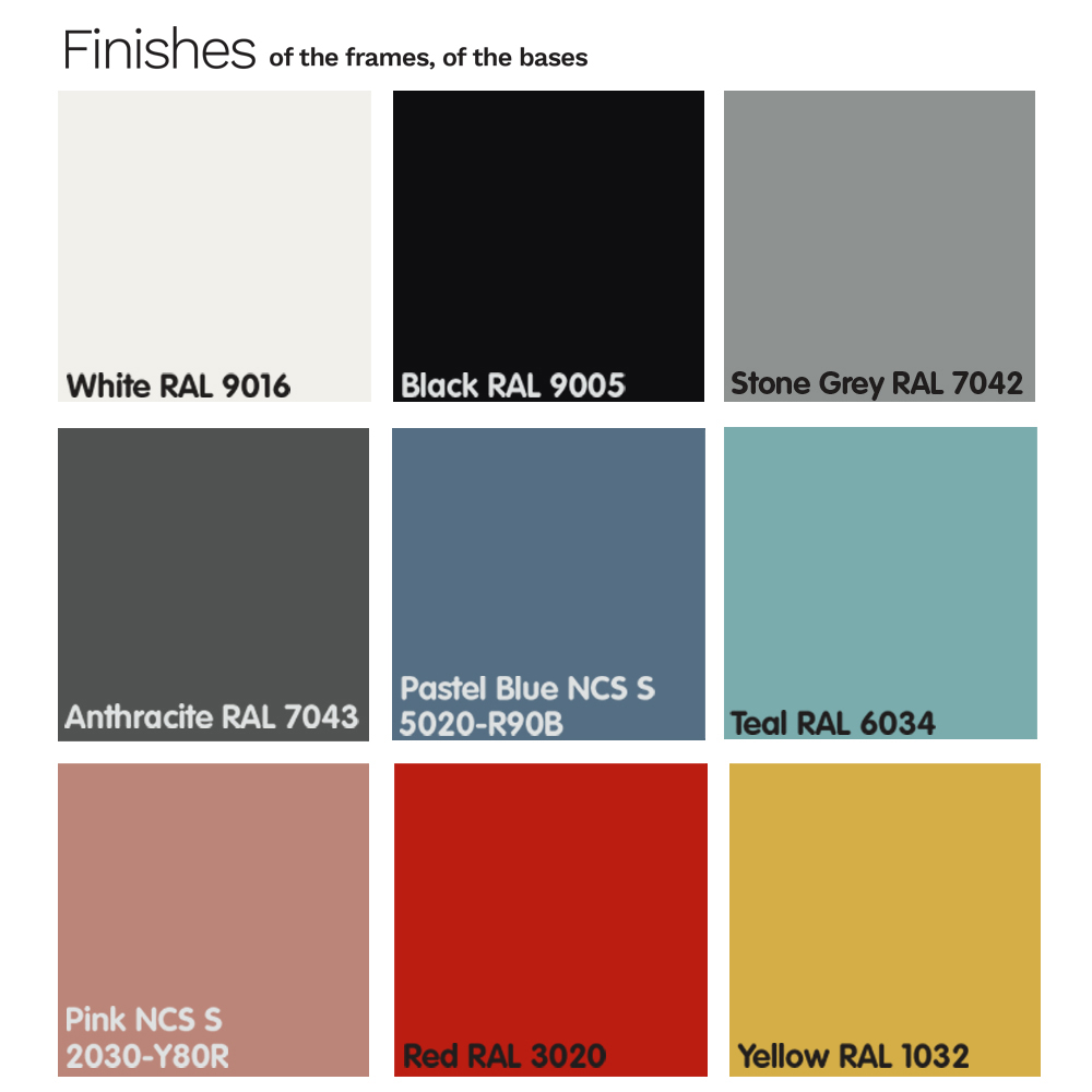 NB : structura și tapițeria scaunului sunt disponibile într-o gamă largă de finisaje și țesături diferite.