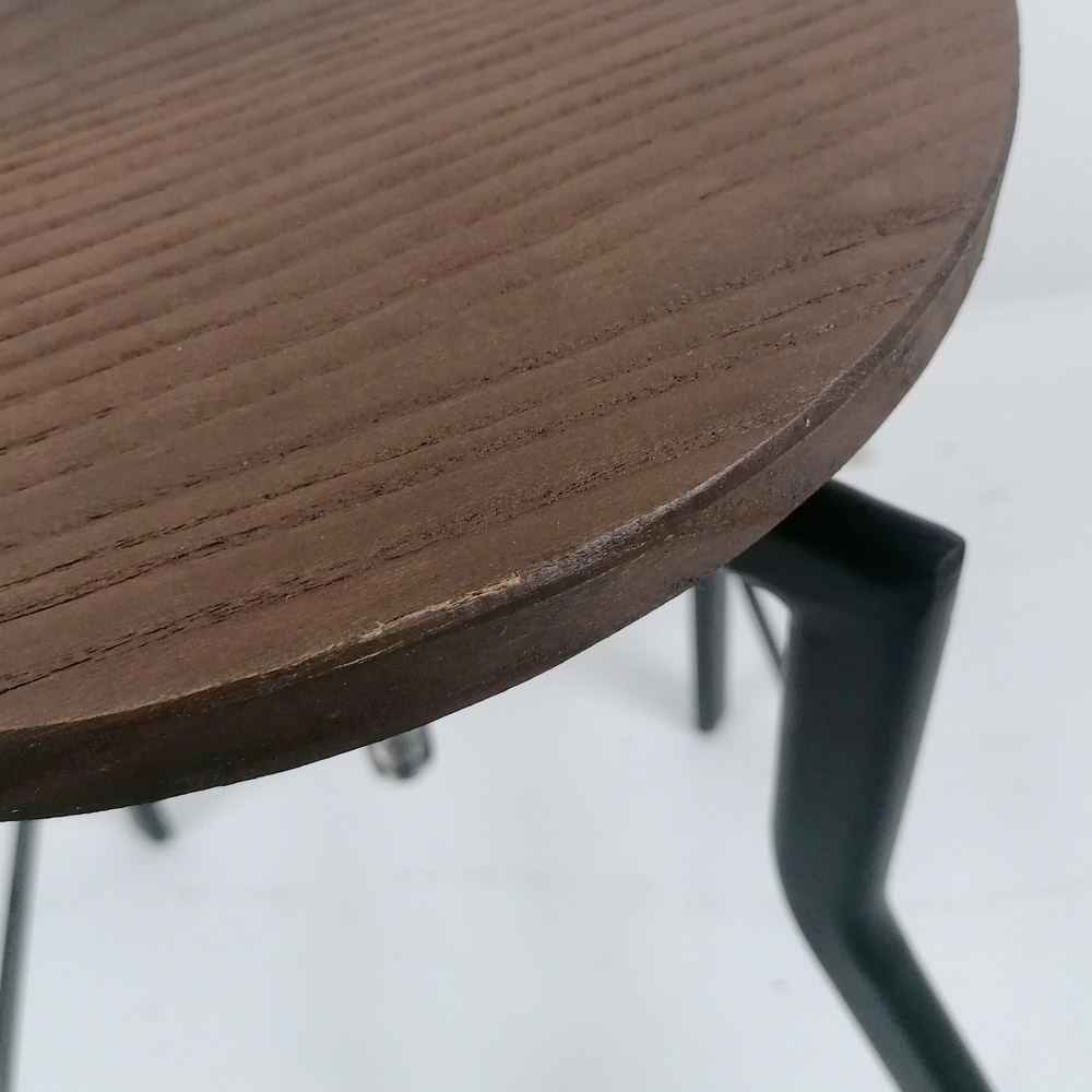 Are o structură metalică vopsită în negru, de tip industrial, și un șezut din lemn de nuc, reglabil în înălțime până la o înălțime maximă de 76 cm. Asigură stil și confort maxim cu acest scaun.