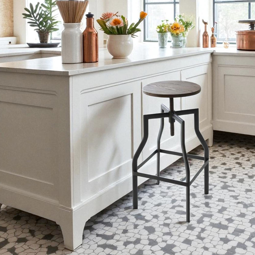 Are o structură metalică vopsită în negru, de tip industrial, și un șezut din lemn de nuc, reglabil în înălțime până la o înălțime maximă de 76 cm. Asigură stil și confort maxim cu acest scaun.