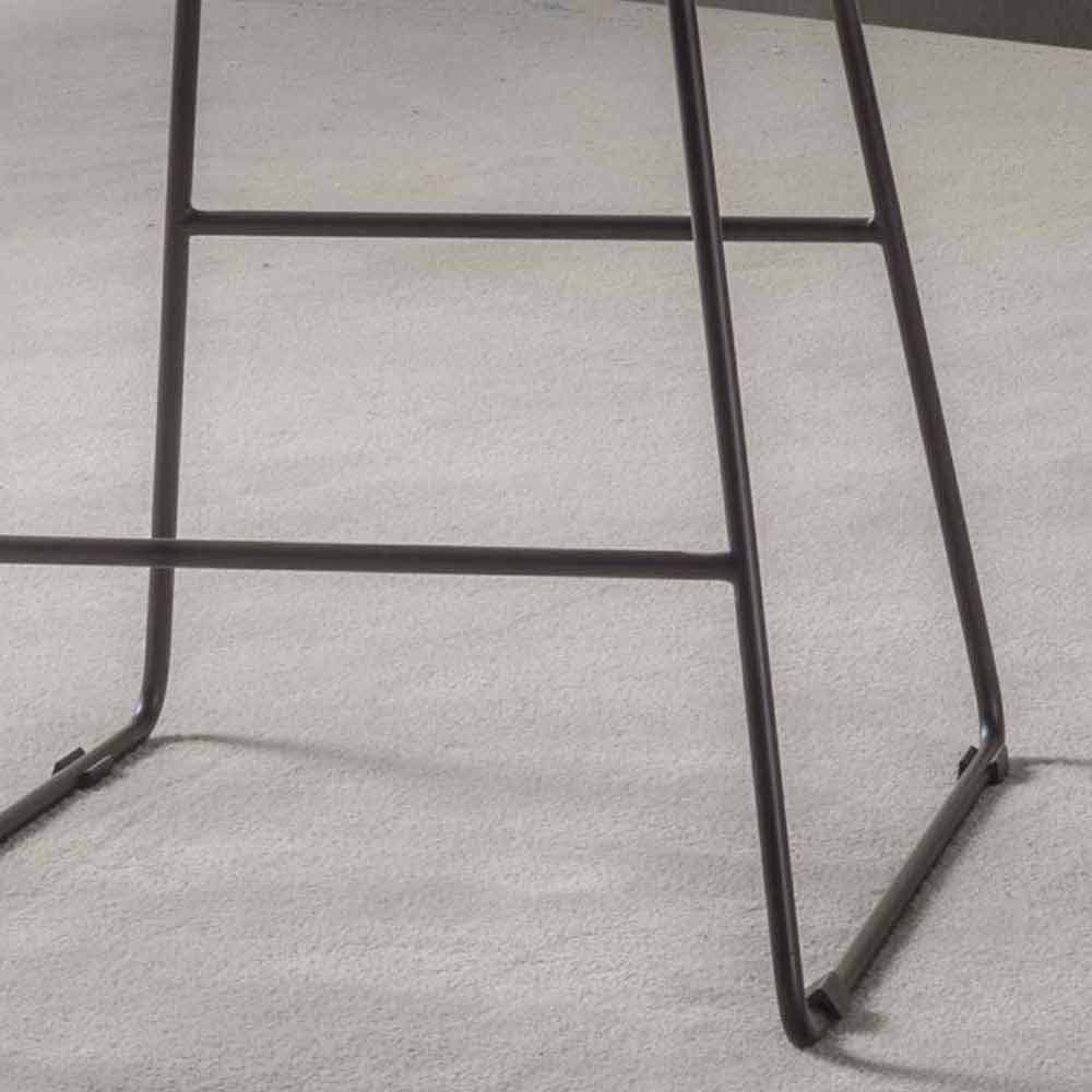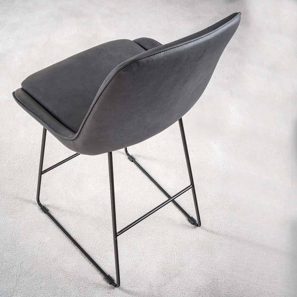 Scaun de design cu sanie, cadru metalic și scaun din piele ecologică.