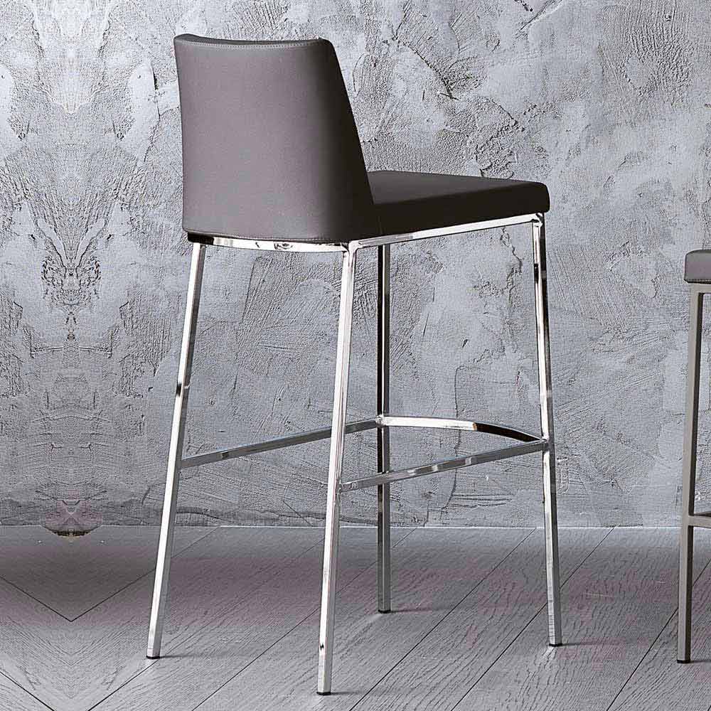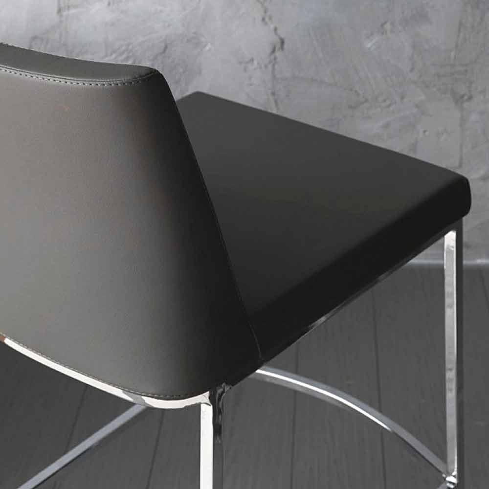 Scaun cu cadru metalic și scaun spumat acoperit în piele ecologică.