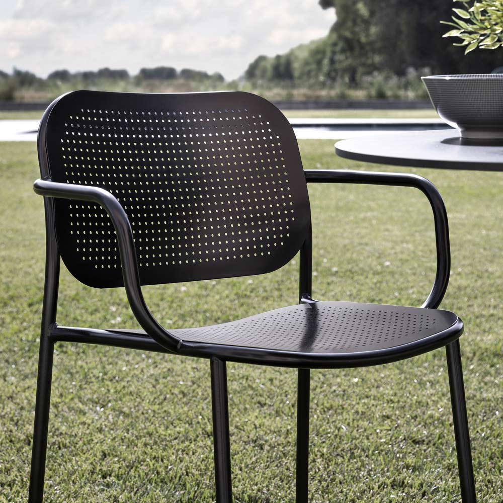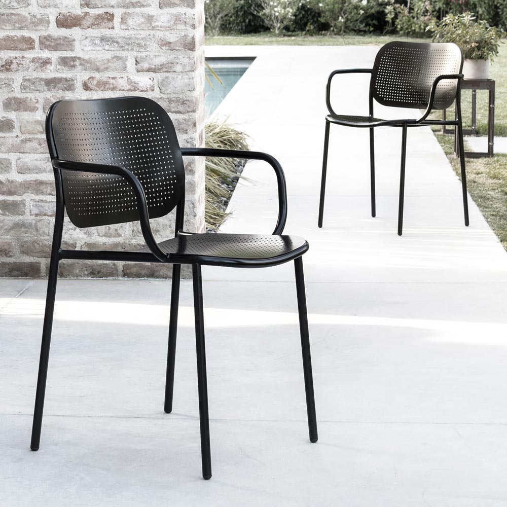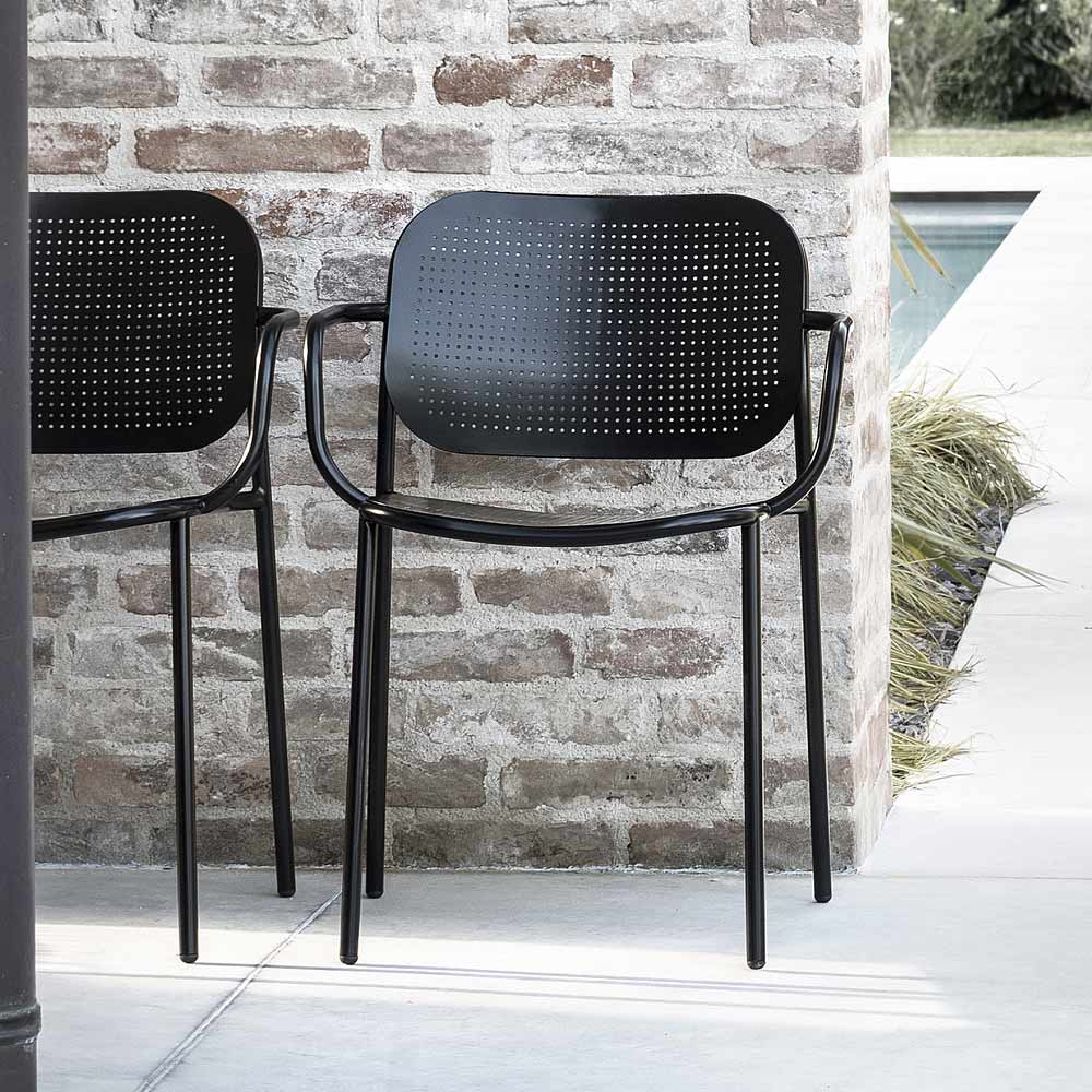 Scaun de gradina din metal vopsit cu cotiere Made in Italy, 2 bucati.