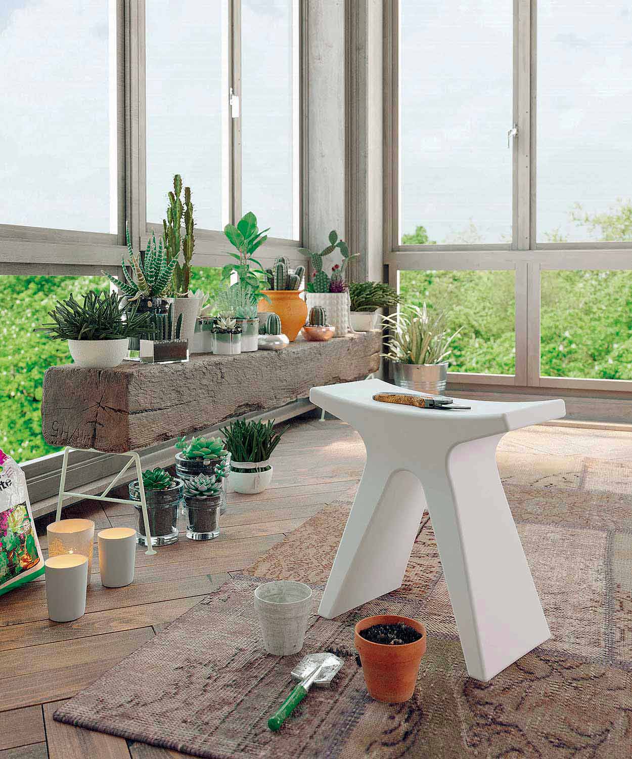 Taburet scăzut exterior cu un design modern din polipropilenă, Made in Italy