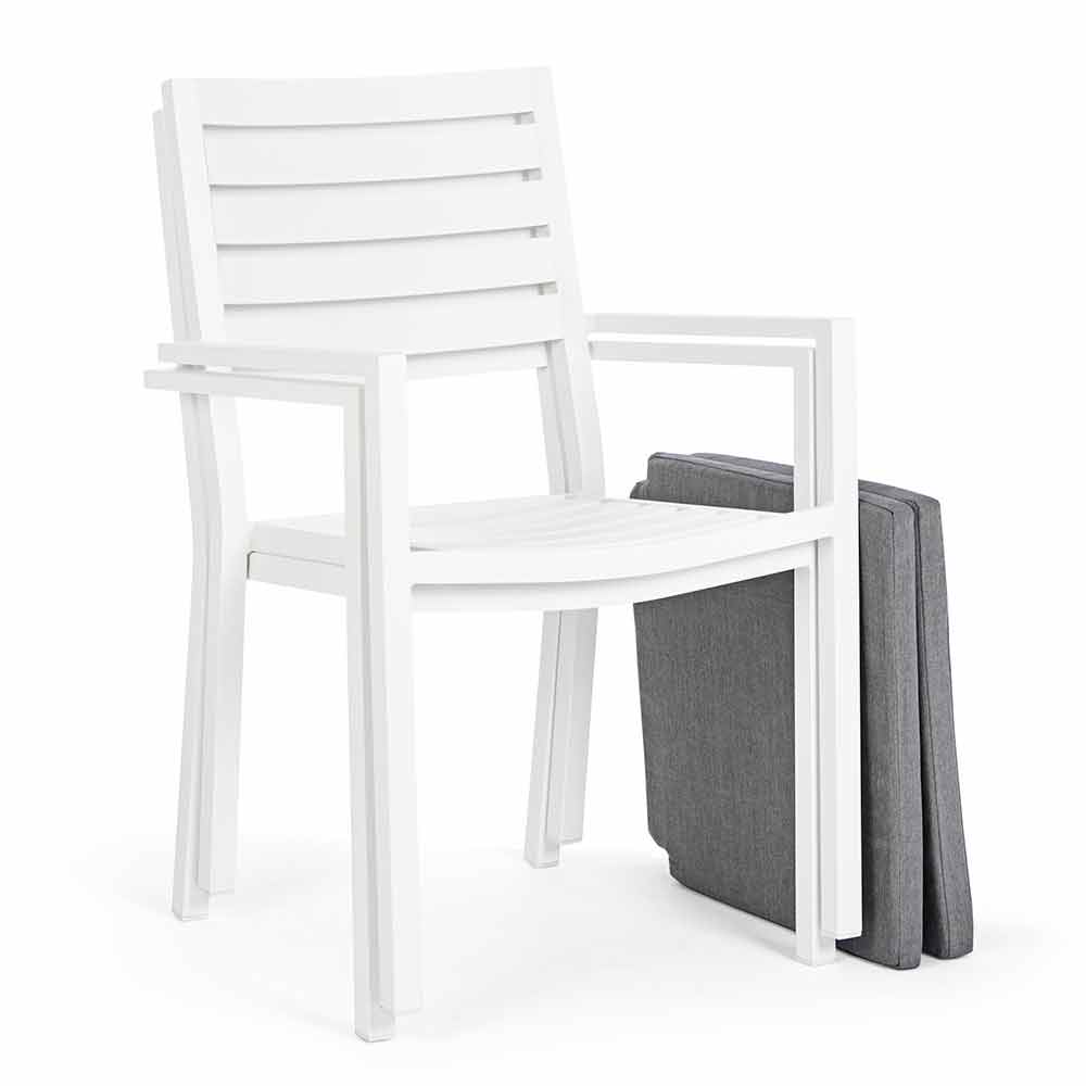 Cadru din aluminiu , acoperit cu pulbere (poliester), perne detașabile cu țesătură Spun Poly (poliester). Stivuibil .