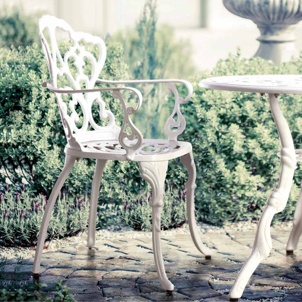 Scaun de grădină cu cotiere Shabby Chic Design în oțel - farmec