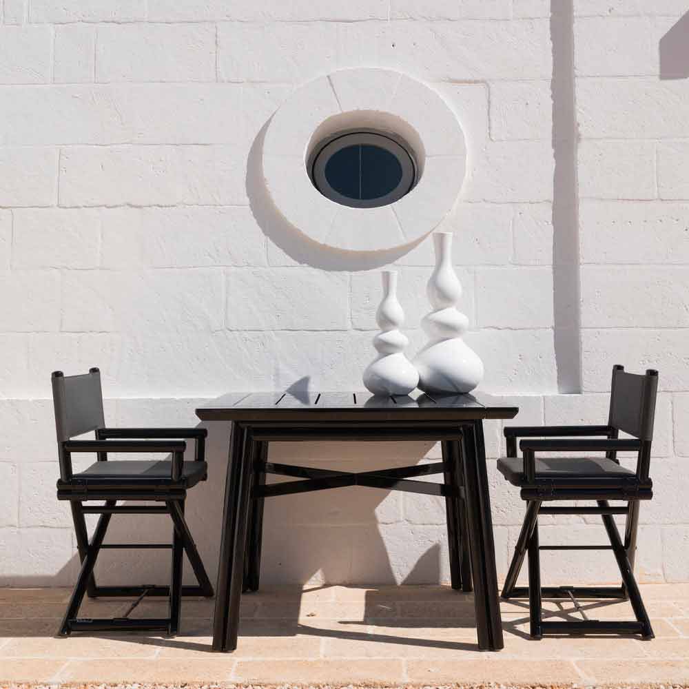 Scaun pliabil de regizor pentru exterior în lemn natural sau negru, lux fabricat în Italia.
