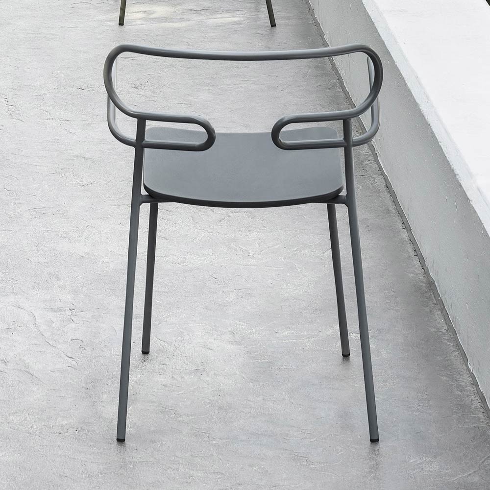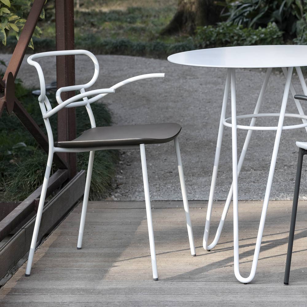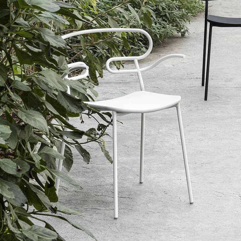 Scaun de exterior fabricat în Italia cu structură metalică vopsită și scaun din poliuretan. Simplu și esențial, acest complement iese în evidență datorită liniilor sale ușoare și formei speciale a spătarului obținută prin curbura unui singur tub metalic, creând astfel un design neobișnuit și avangardist. Ideal pentru decorarea zonelor exterioare cu personalitate precum grădini, verande și terase, are o caracteristică deosebit de funcțională, care este posibilitatea stivuirii pentru a obține o soluție practică și ușor de aranjat, optimizându-vă spațiile atunci când scaunele nu sunt utilizate.