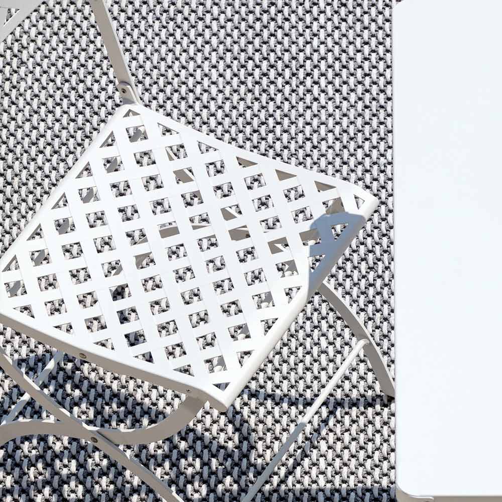 Acest scaun de exterior este fabricat din oțel galvanizat și este conceput ca accesoriu de mobilier extrem de rezistent la agenții corozivi și atmosferici, certificat prin „Fabricat în Italia”. Structura sa din oțel este ranforsată printr-un proces de galvanizare și este realizată din materiale concepute pentru a avea o rezistență ridicată la agenții corozivi și atmosferici. Datorită elasticității sale, scaunul poate fi pliat atunci când nu este utilizat pentru a optimiza spațiul .