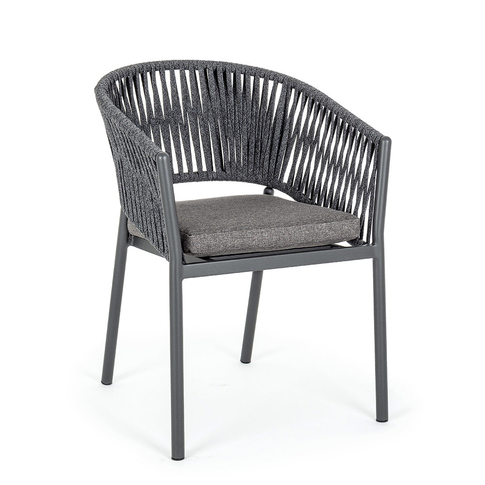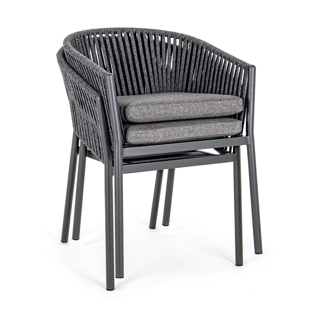 Structură din aluminiu acoperit cu pulbere (poliester). Țesut cu corzi Tetoron (100% poliester). Pernă de scaun cu capac detașabil cu țesătură Olefin (100% polipropilenă). Stivuibil.