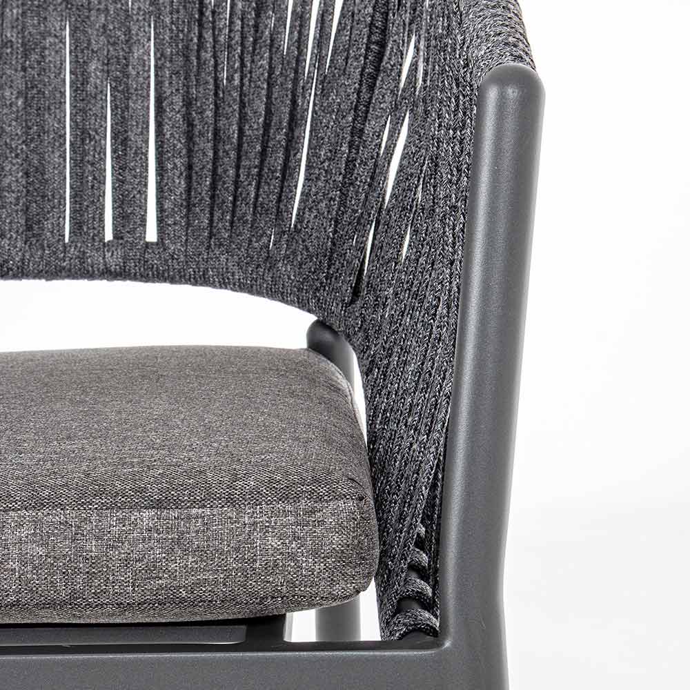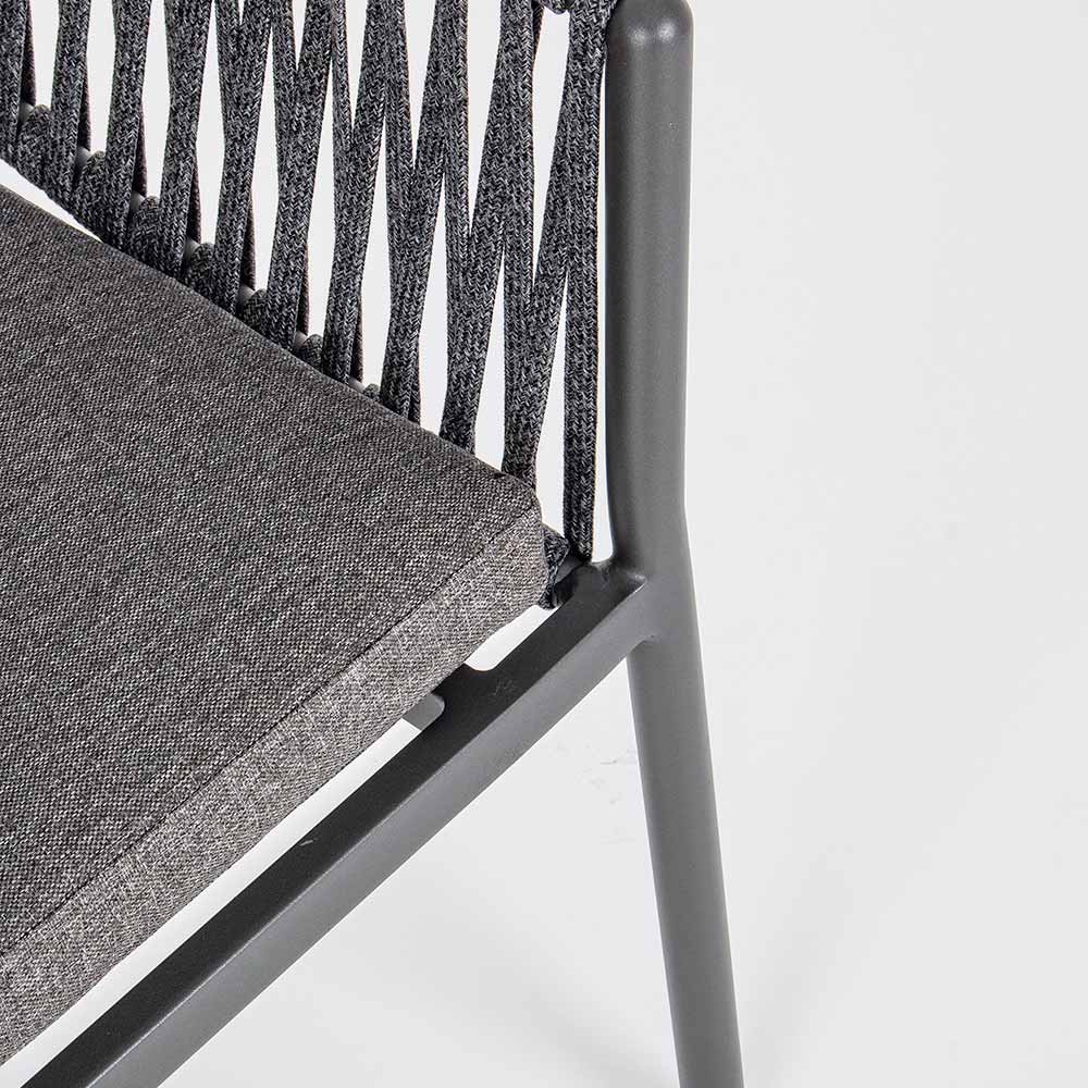 Scaun de exterior stivuibil din aluminiu, frânghie și țesătură detașabilă din 4 piese, de înaltă calitate.