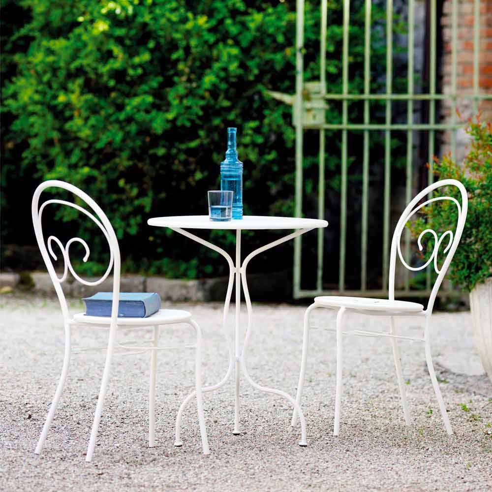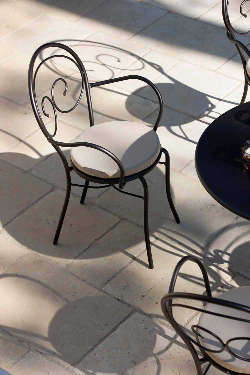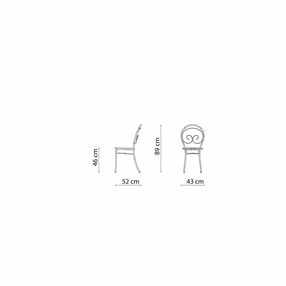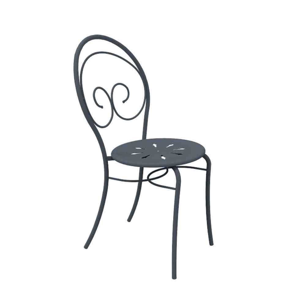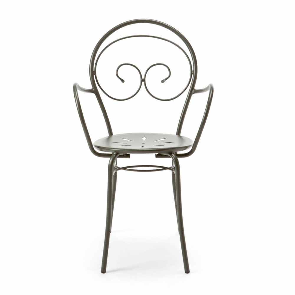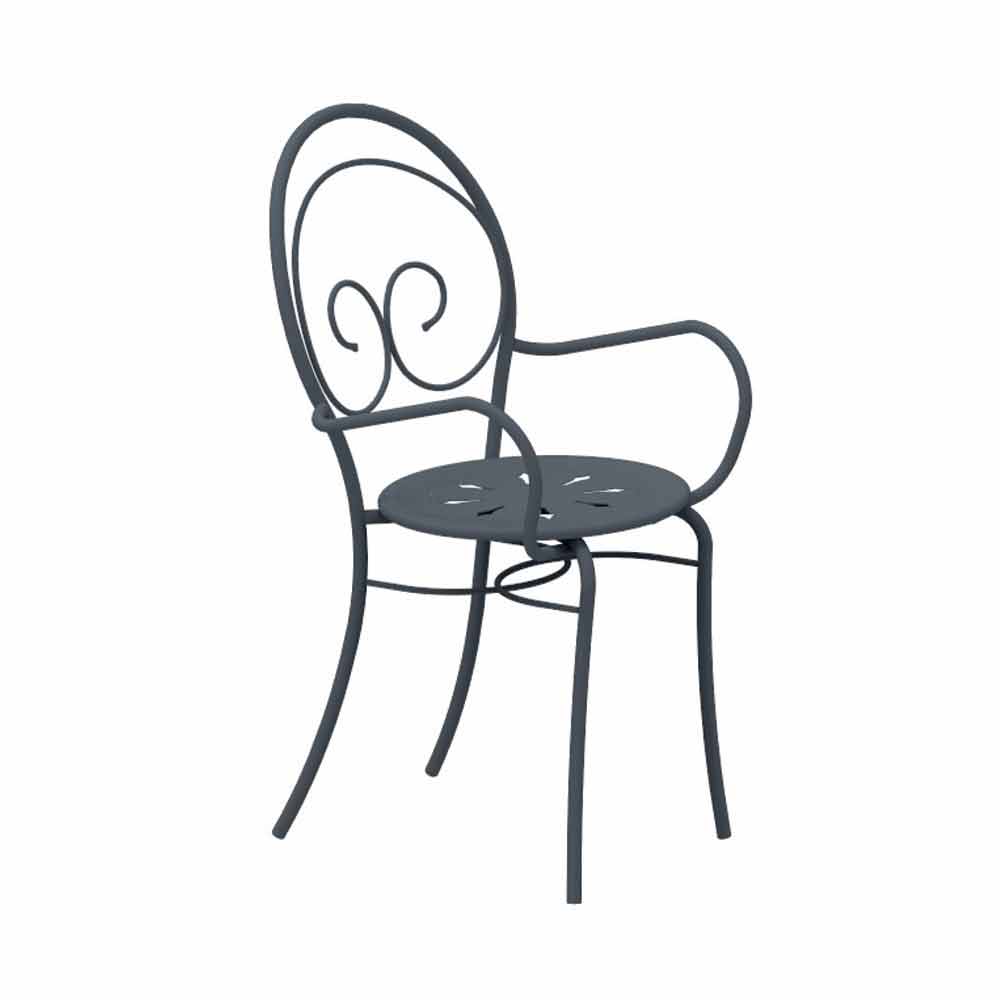 Scaun de exterior stivuibil cu sau fără cotiere din fontă galvanizată vopsită în câmp electrostatic, fabricat în Italia, 2 bucăți.