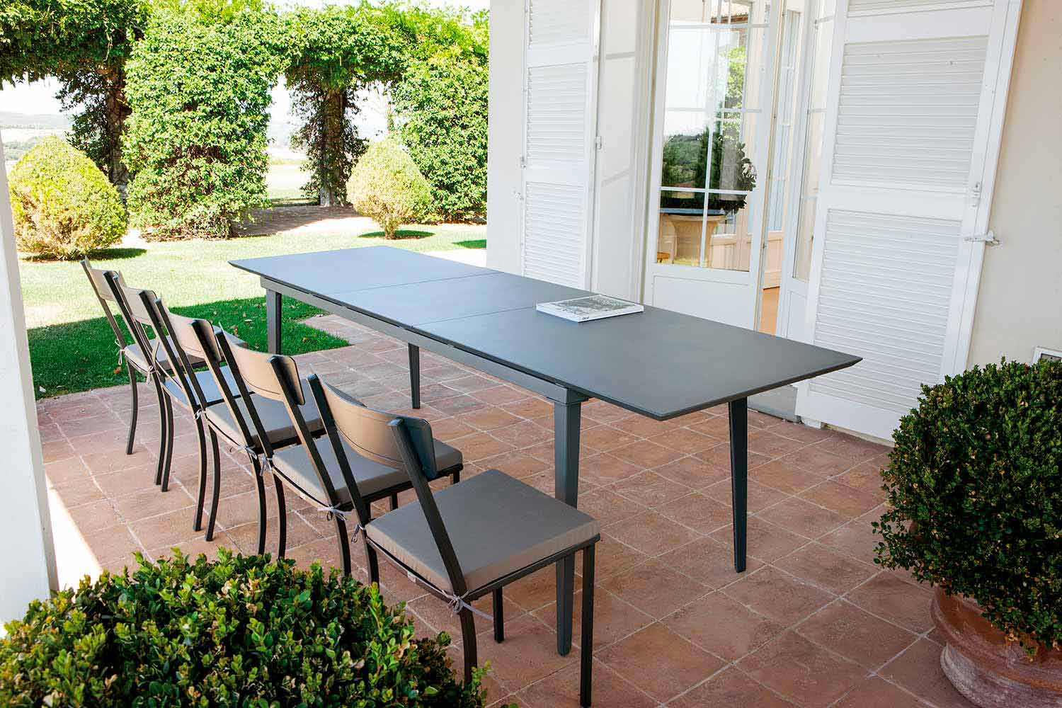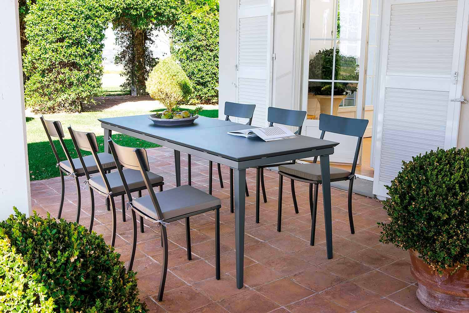 Această linie de produse pentru exterior reprezintă fuziunea perfectă între un efect vizual minunat și un design minimalist, cu linii simple și ușoare, datorită materialelor de cea mai bună calitate și tehnicilor inovatoare utilizate. Materialele și tehnicile utilizate, combinate cu toată forța Made in Italy, conferă fiecărui produs o durabilitate excelentă în timp și o rezistență perfectă la toate condițiile meteorologice. Datorită formelor delicate și stilului care disting această linie de produse, o fac potrivită pentru cele mai variate contexte, de la cele private, cum ar fi grădinile și terasele, până la un mediu contractual, cum ar fi barurile și restaurantele.