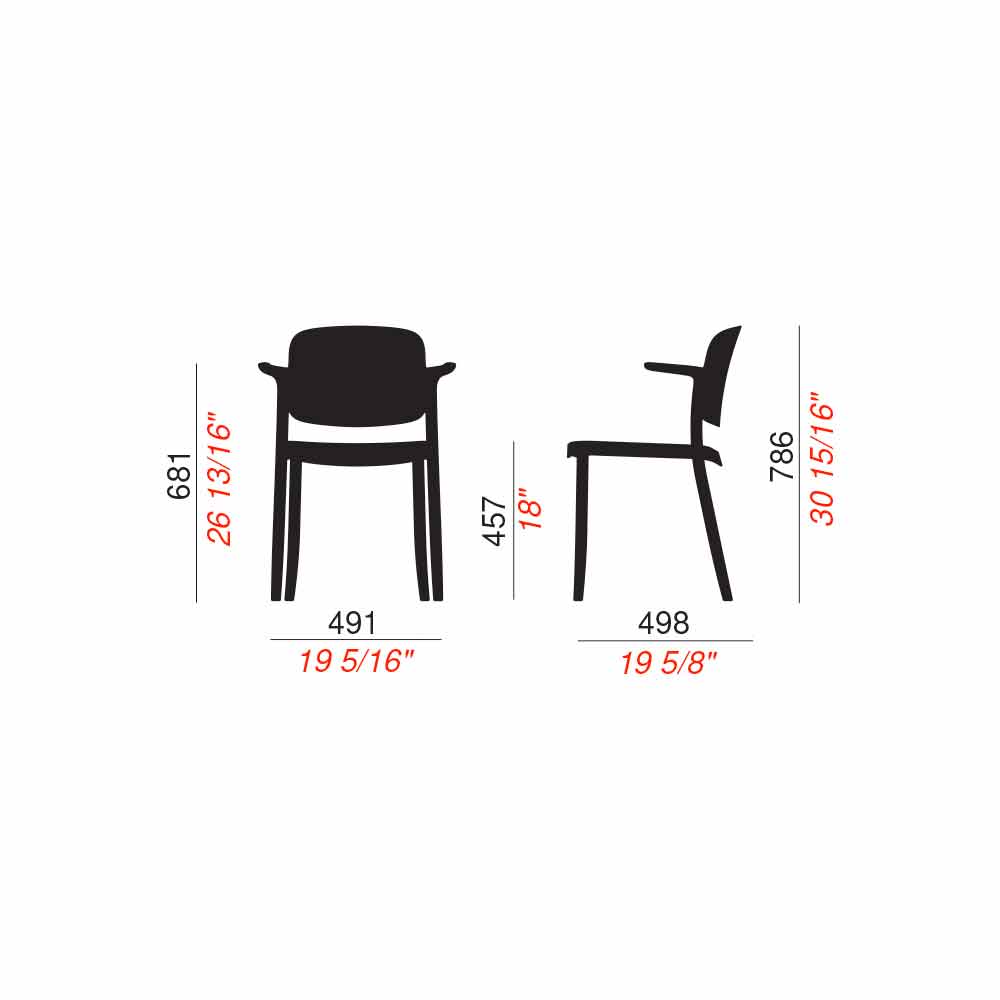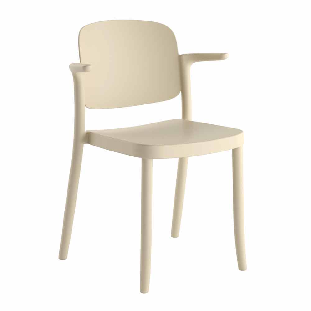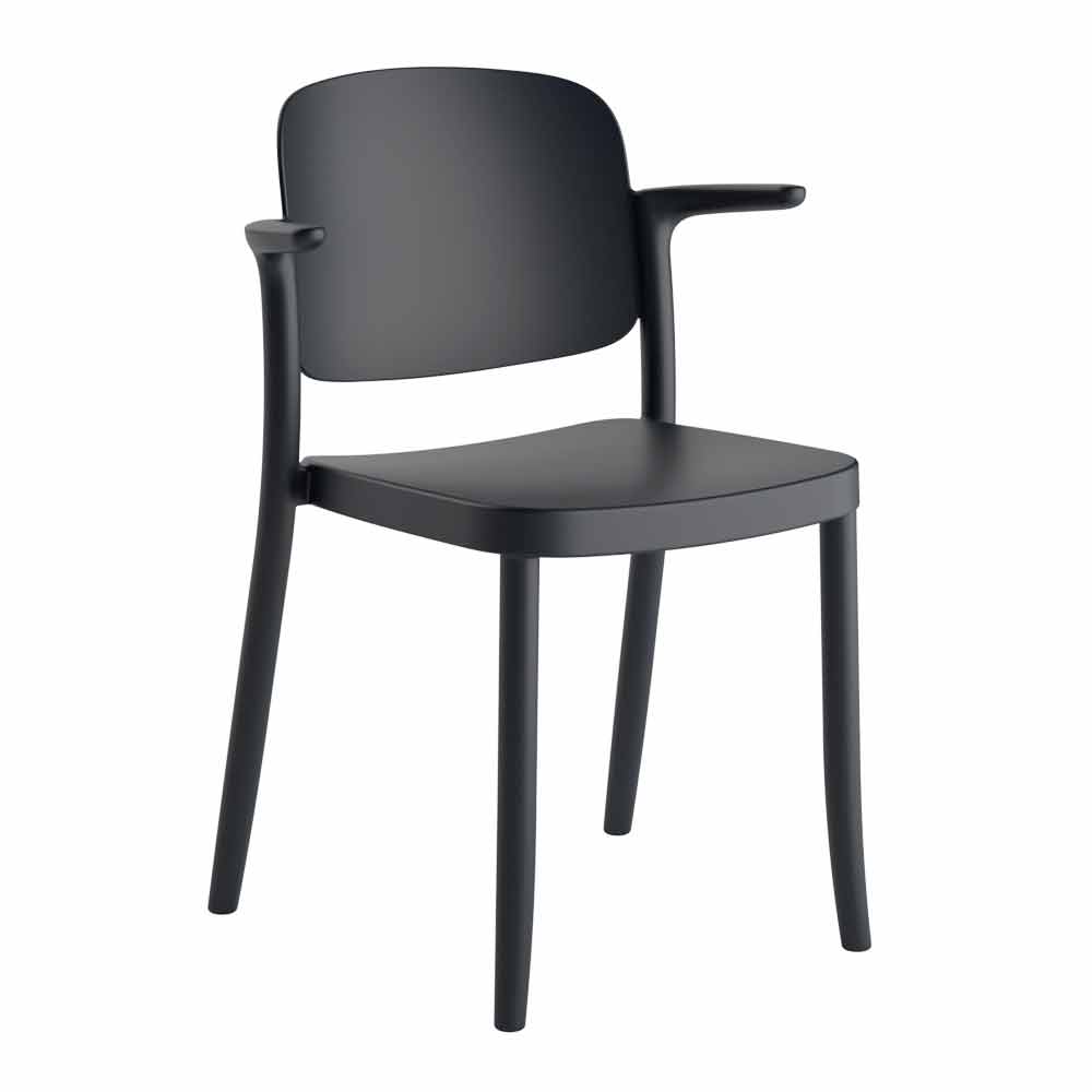 Scaun exterior design din polipropilenă cu cotiere stivuibile, 4 piese, fabricat în Italia.
