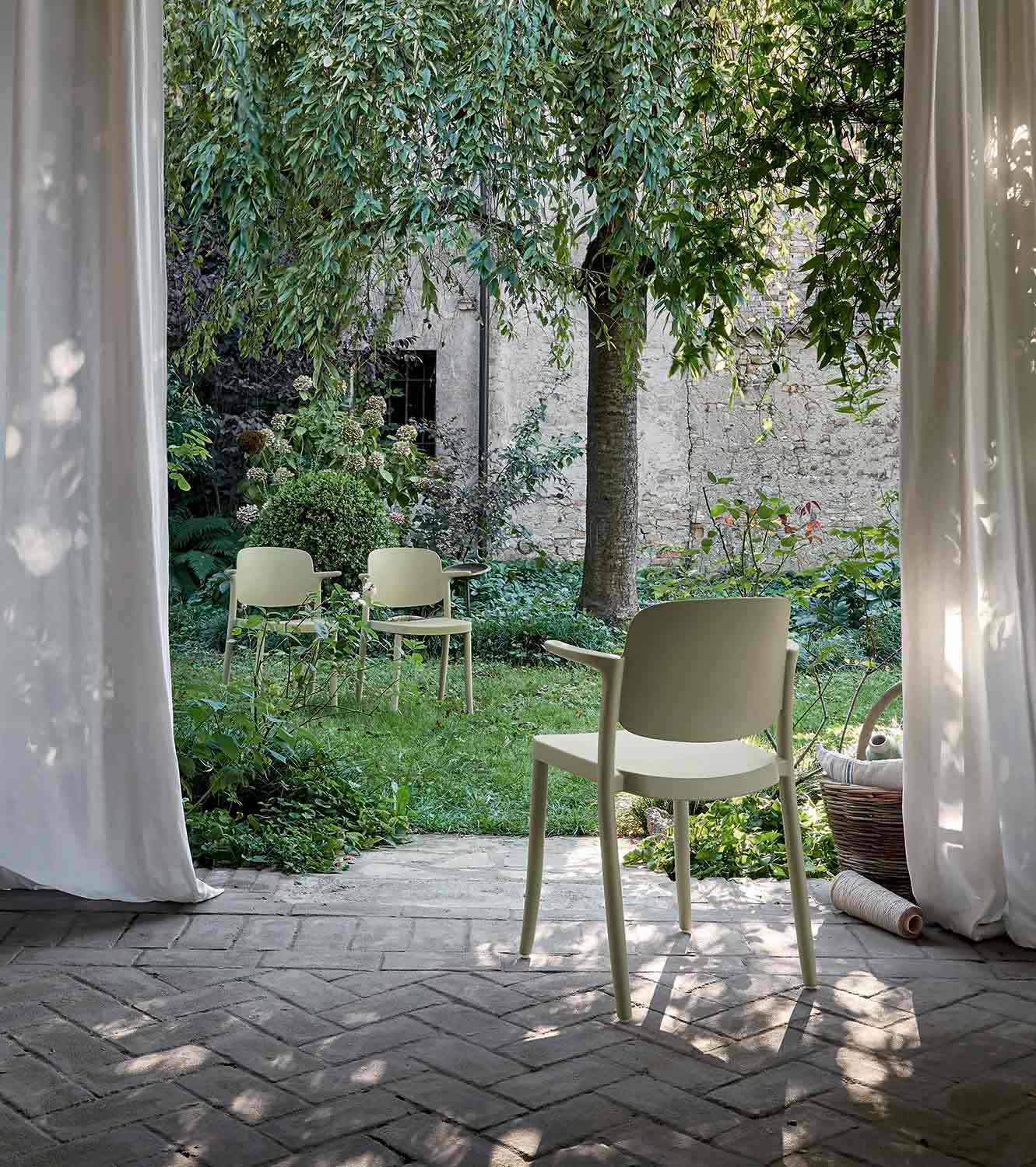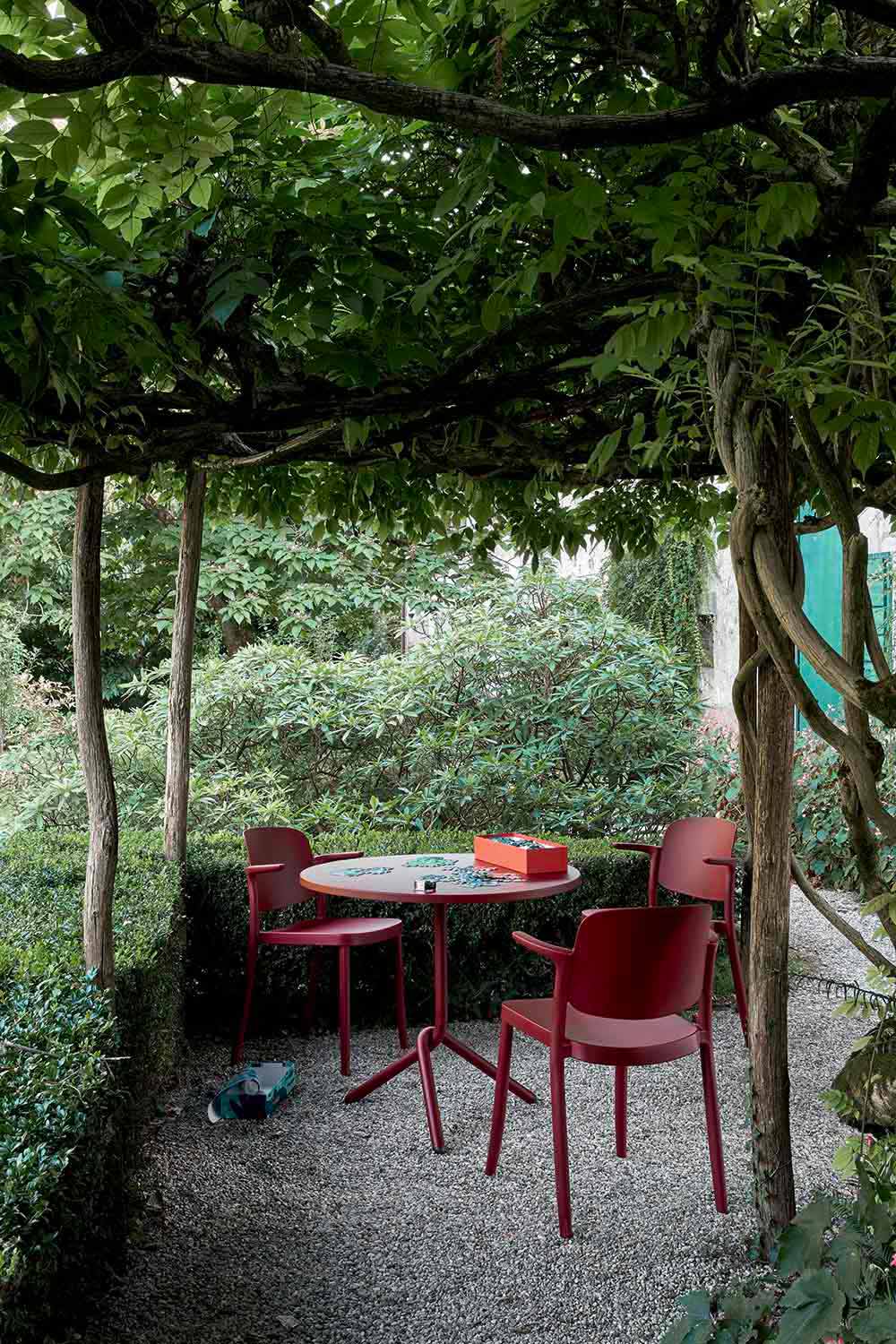 Scaunul exterior Bertina este caracterizat printr-un design care reușește să îmbine perfect tradiția pe care o găsim sub formă cu modernitatea polipropilenei care o face rezistentă la toate condițiile meteorologice.