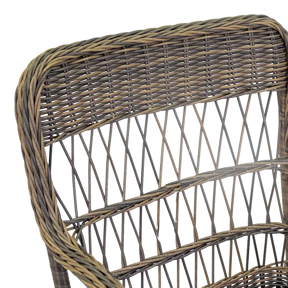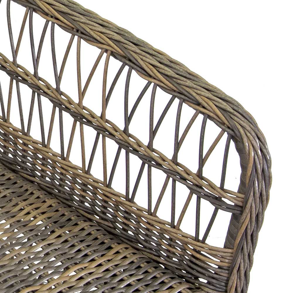 Acest braci de grădină din poliratan combină eleganța și confortul într-un design perfect atât pentru interior, cât și pentru exterior. Cadrul rezistent din aluminiu este învelit în împletituri de poliratan de înaltă calitate, care nu numai că asigură durabilitatea, dar adaugă și o notă naturală și rafinată piesei.