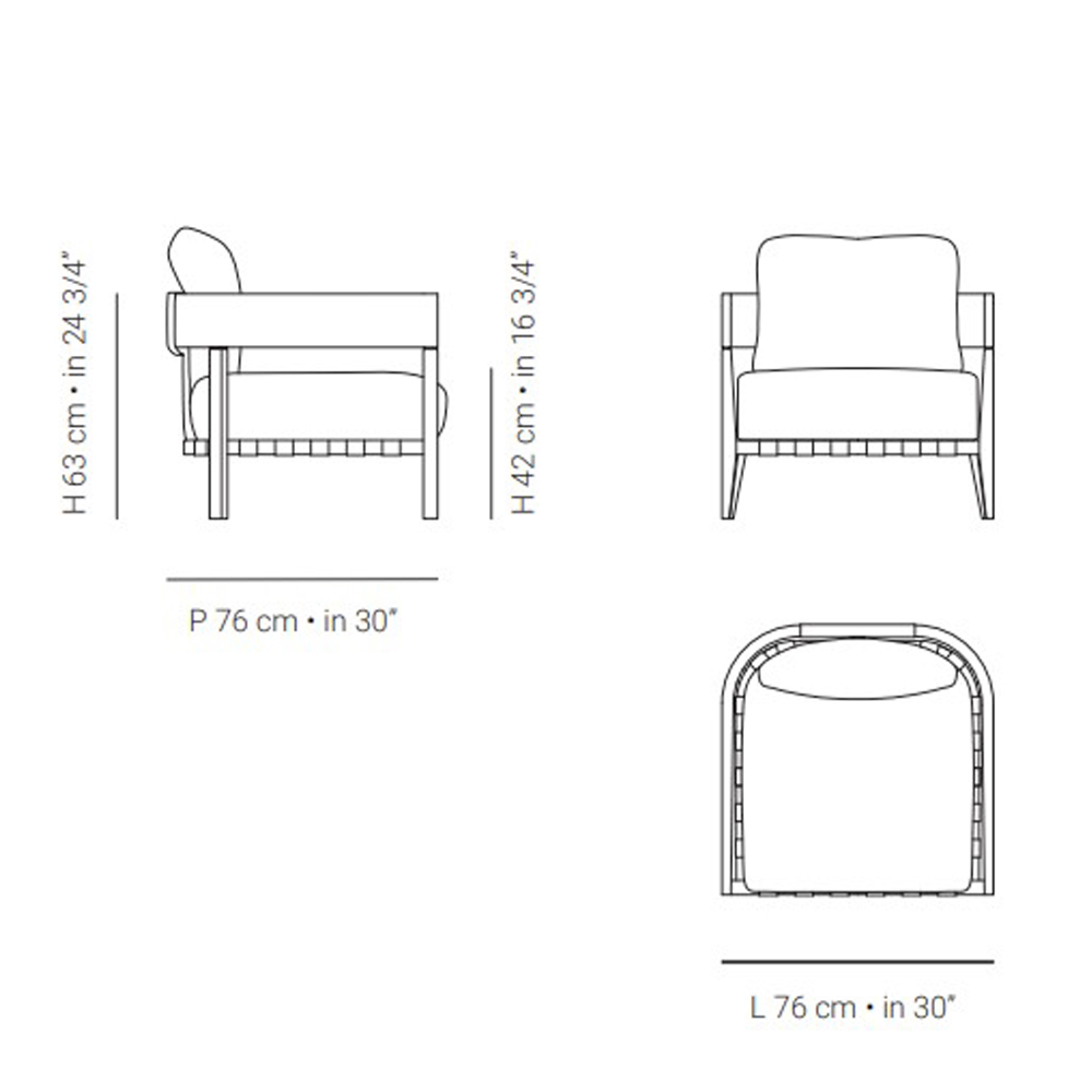 Fotoliu de exterior fabricat in intregime in Italia cu perne pentru sezut si spate din