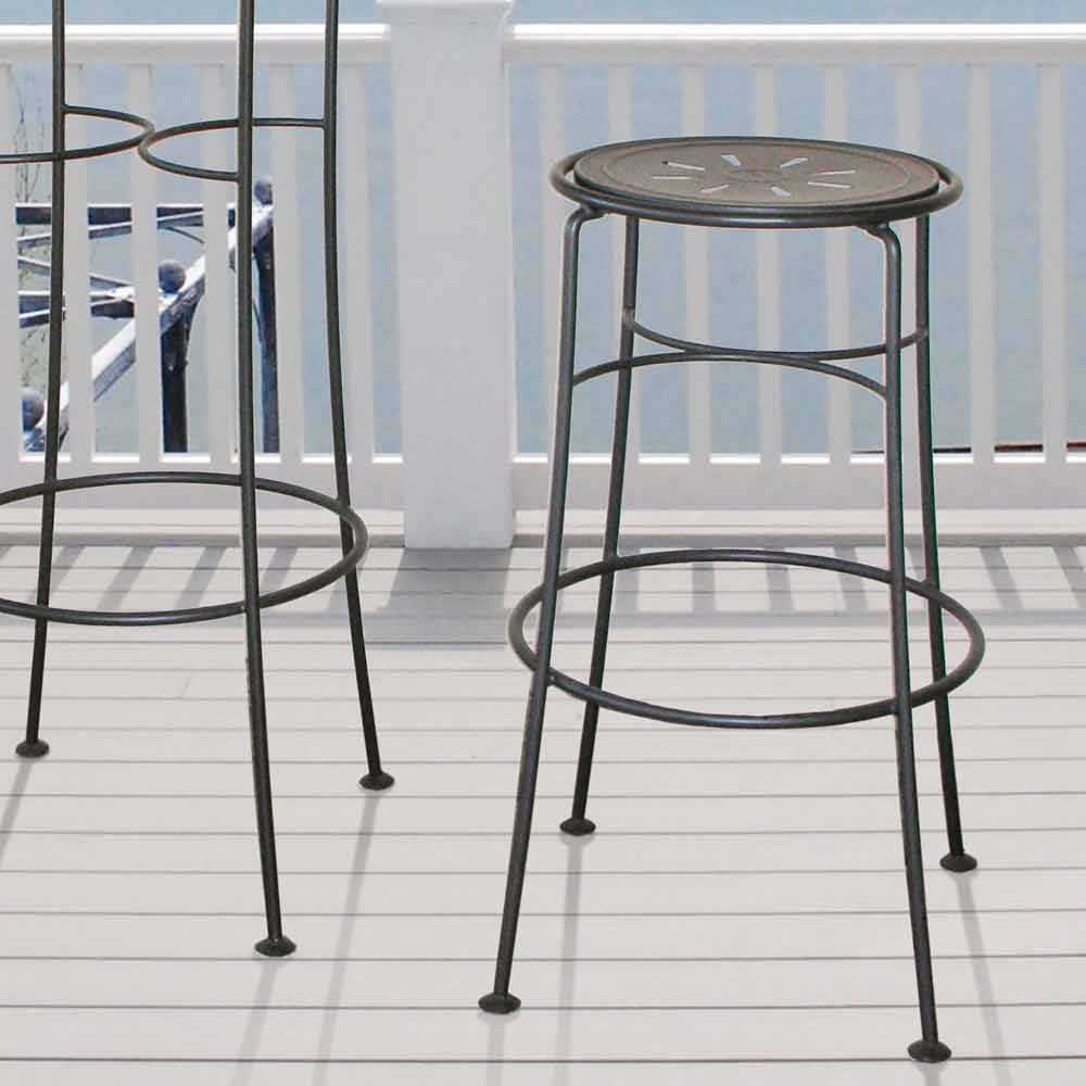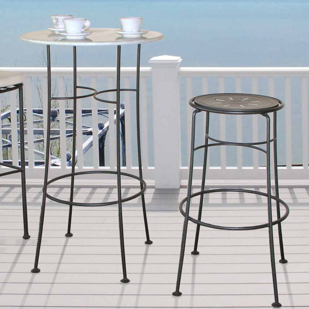 Scaun înalt de grădină din fier vopsit fabricat manual în Italia.