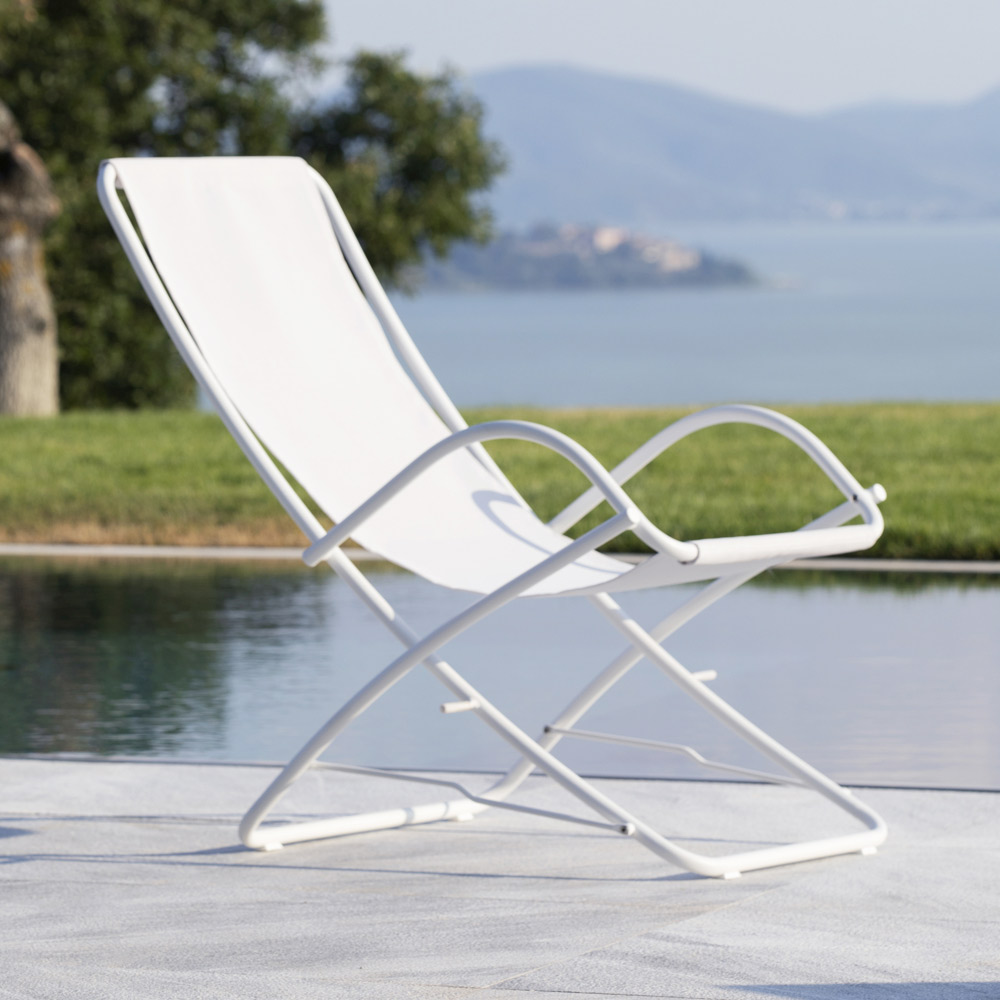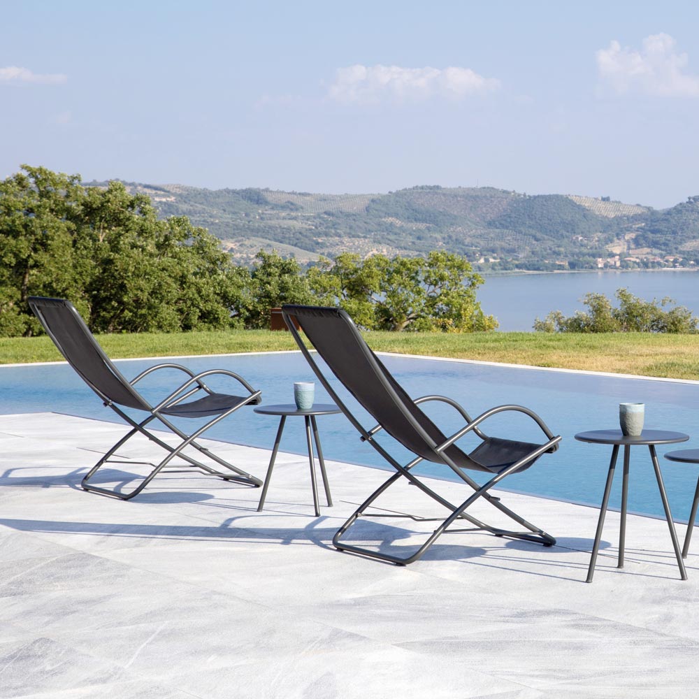 Șezlong pliabil pentru exterior din oțel galvanizat, fabricat în Italia, 2 bucăți.