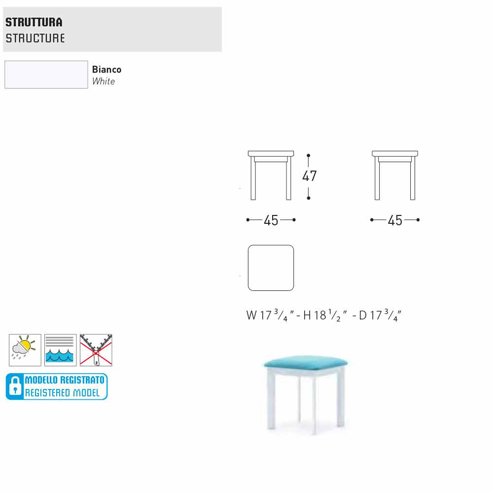 Întreținere: Colecția acceptă lumina soarelui și ploaia. Vă recomandăm întreținerea regulată și o atenție deosebită protecției obiectelor în caz de condiții meteorologice nefavorabile (gheață, grindină, schimbări de temperatură, umiditate, persistență, căldură aprinsă sau frig extrem). Durata și integritatea acestor elemente depind de îngrijirea cu care sunt menținute. Pentru produsele din aluminiu și oțel, deși protejate de tratamente și finisaje adecvate pentru utilizare în exterior, este esențial să se prevină stagnarea apei în interiorul produsului în sine. De fapt, toate articolele au găuri tehnice necesare pentru aplicarea tratamentelor și a finisajelor de protecție. Introducerea apei în aceste găuri și stagnarea acesteia pot provoca rugină în interiorul conductelor.