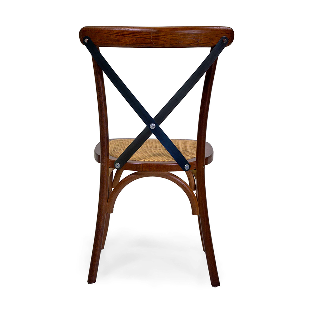Acest scaun din lemn combină farmecul designului clasic cu detalii care îi sporesc eleganța atemporală . Cadrul robust din lemn asigură soliditate și durabilitate , în timp ce spătarul din fier în formă de X adaugă o notă de stil industrial care se potrivește perfect cu estetica tradițională.