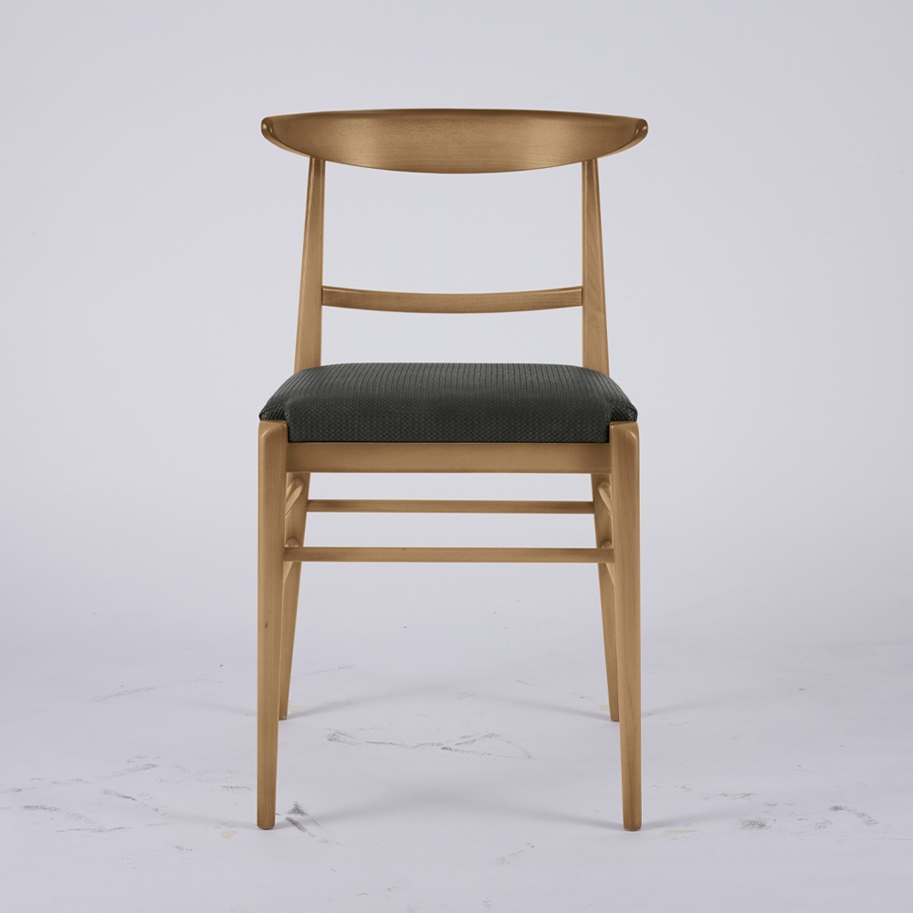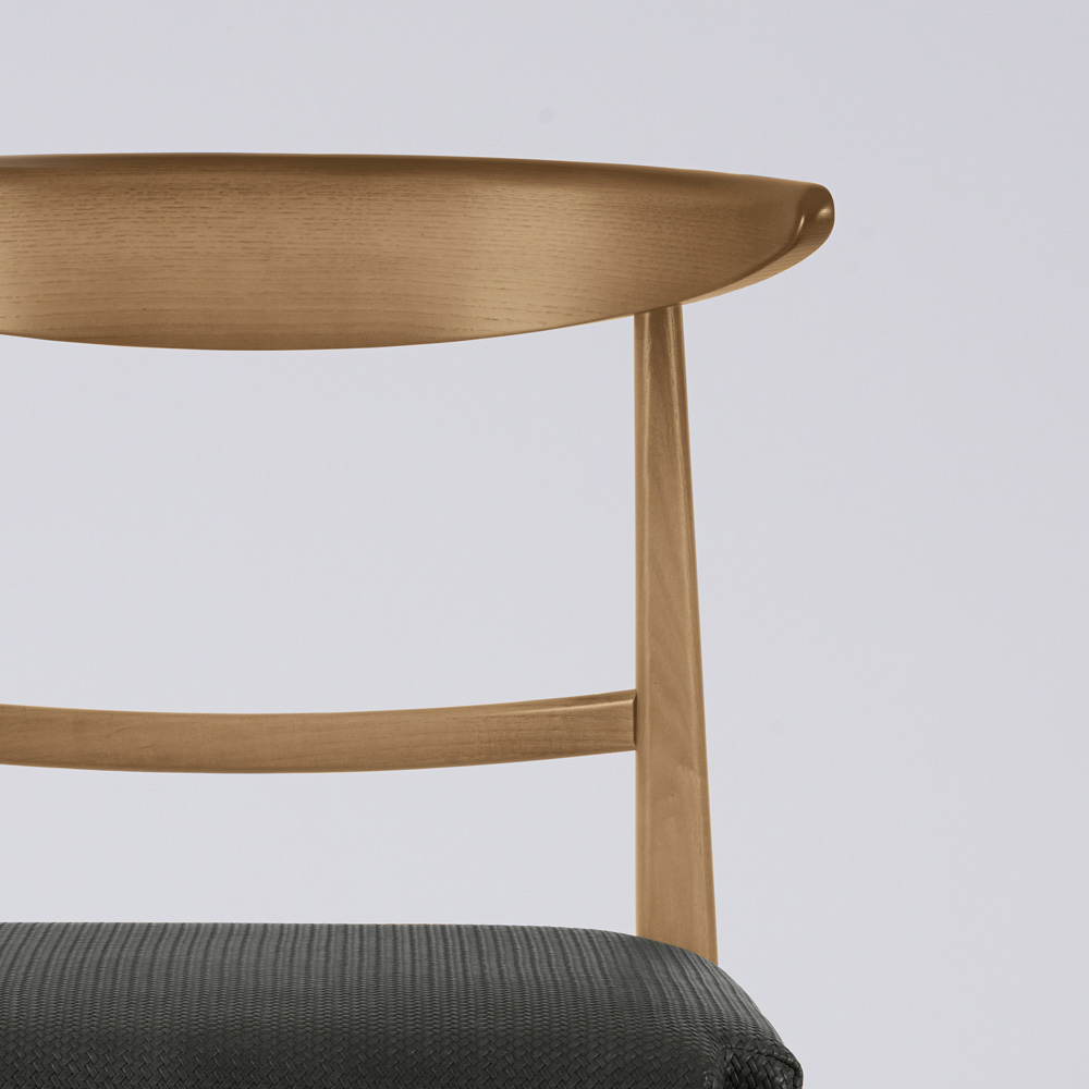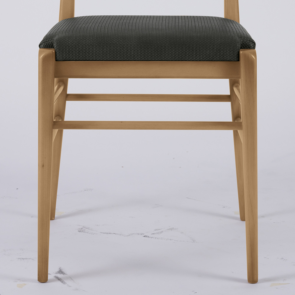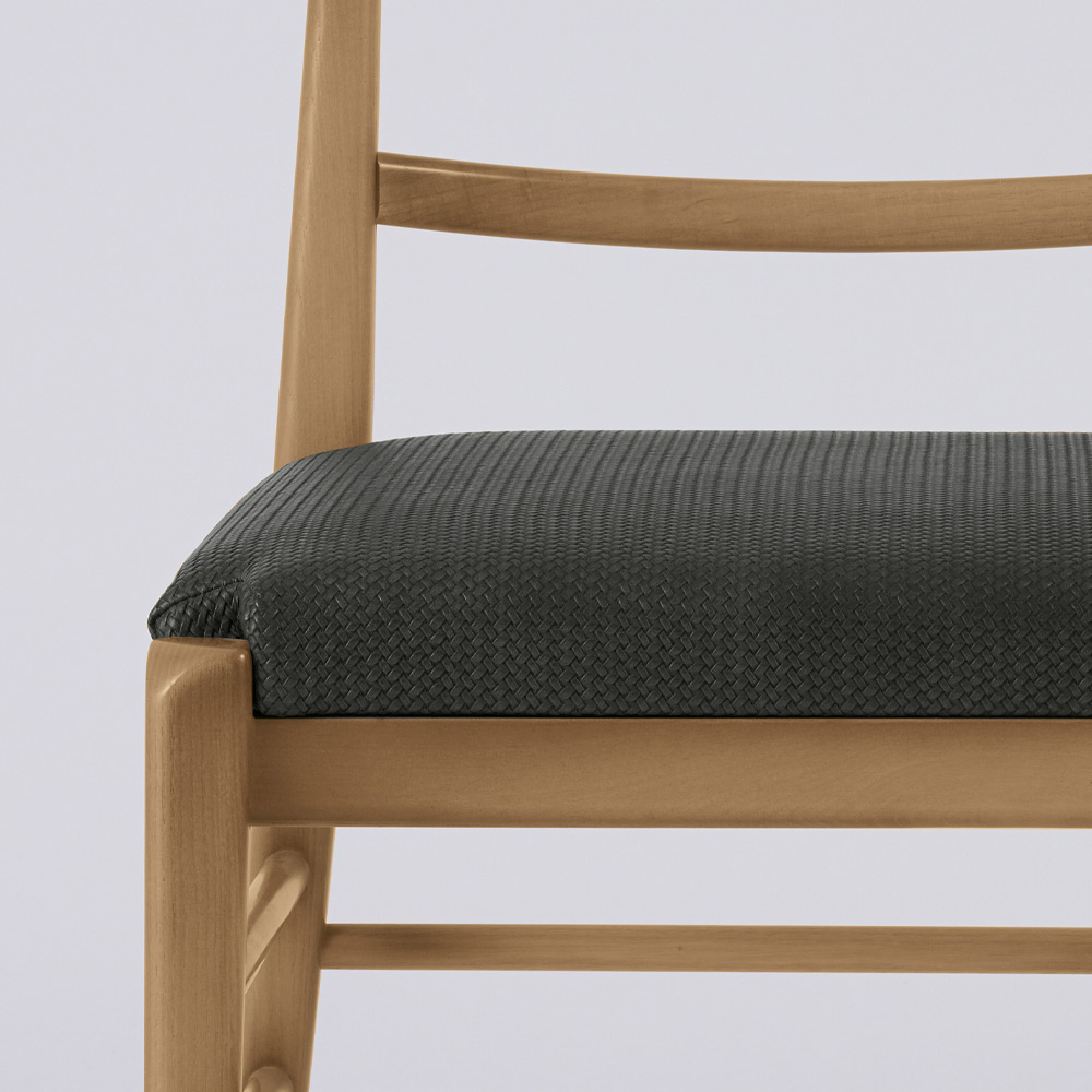 Scaun din lemn cu traverse și șezut din material Made in Italy
