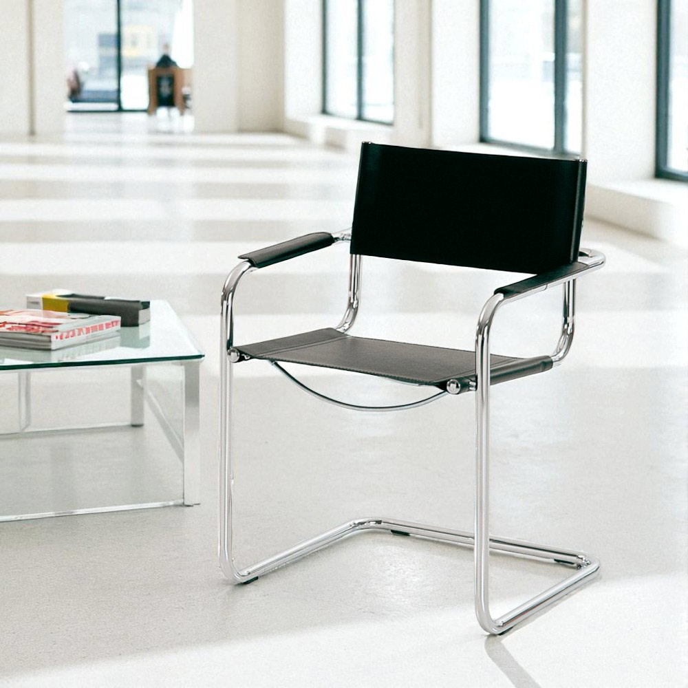 Scaunul Cirillo cu cotiere pentru săli de ședințe sau săli de conferințe este ideal deoarece întruchipează toate aceste caracteristici; are o structură din metal cromat și șezutul, spătarul și cotierele din piele ecologică neagră.