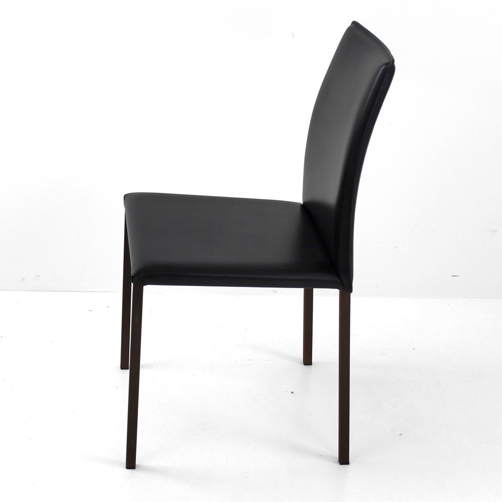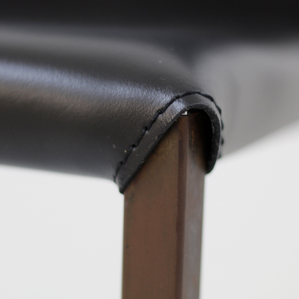 Scaun de sufragerie realizat integral in Italia cu structura Corten si sezut din piele neagra perfect pentru locuinta si potrivit pentru contract. Acest set de mobilier este o idee perfecta pentru toti cei care doresc sa ofere incaperii o nota speciala si moderna, fara a renunta la