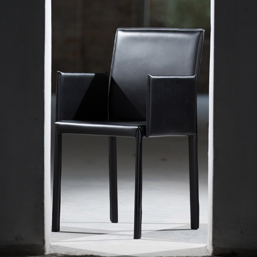 Scaun de sufragerie cu cotiere din piele Made in Italy