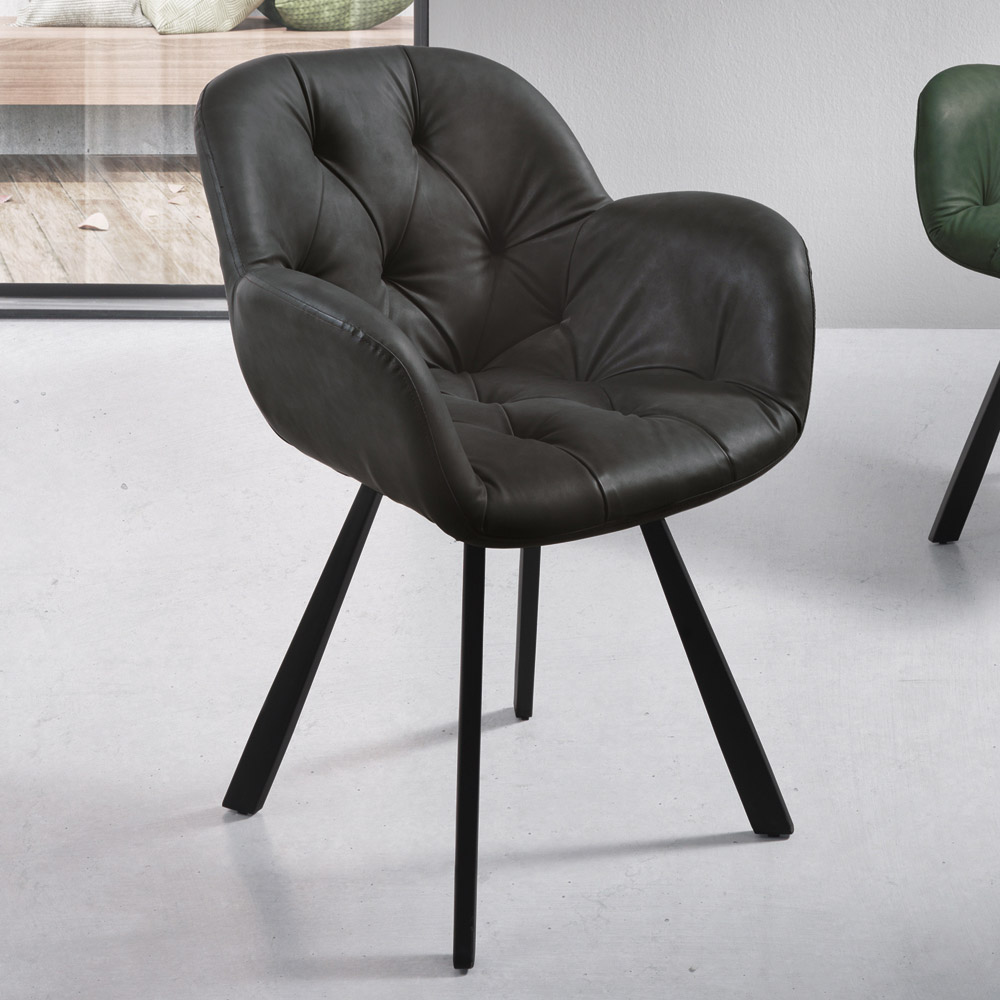 Scaun de living cu structura metalica vopsita si sezut din piele ecologica.