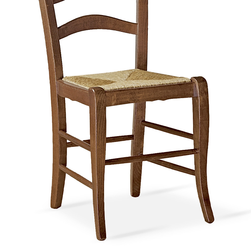 Scaun modern pentru medii interioare cu structura din fag vopsit nuc si stând din paie.