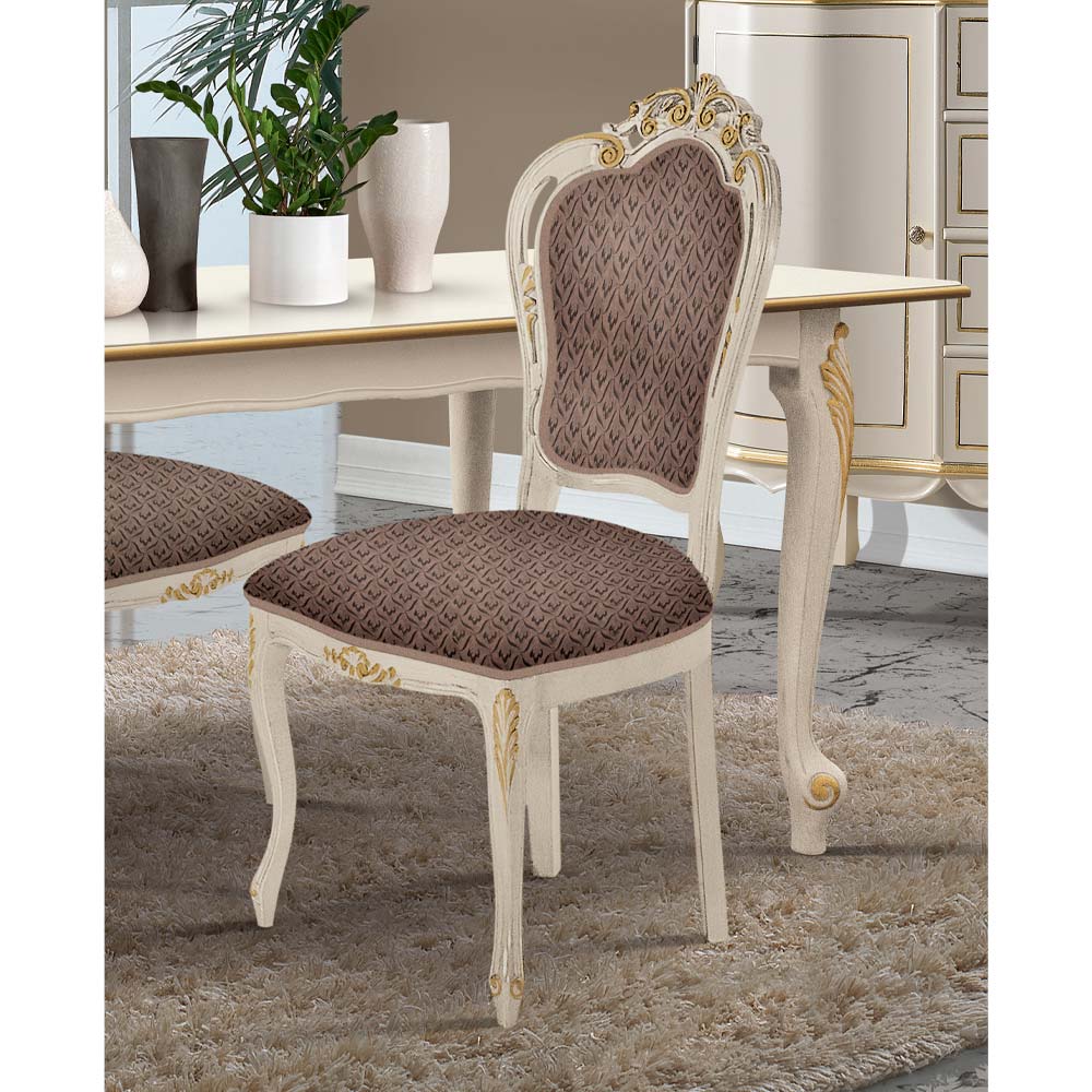 Scaun de sufragerie din lemn alb si material Made in Italy.