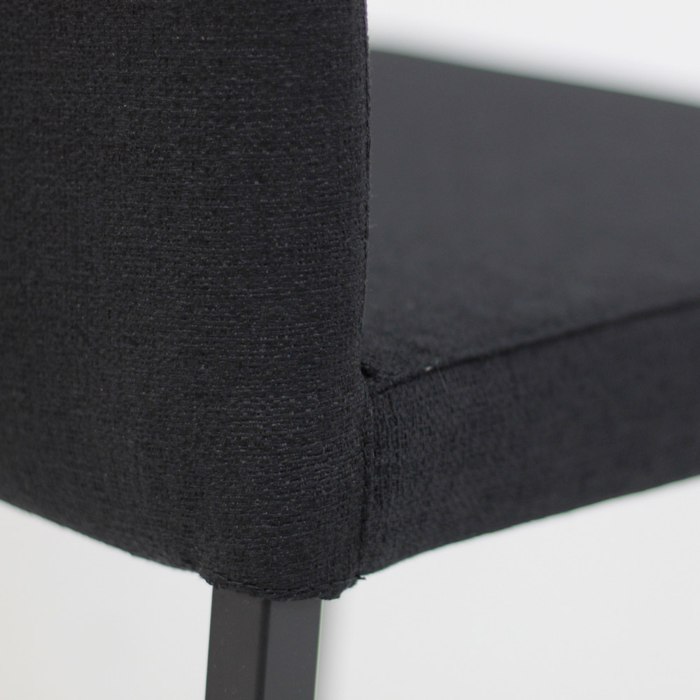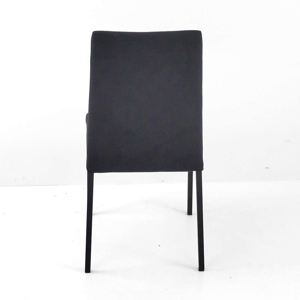 Scaun de sufragerie realizat integral in Italia cu spatar inalt, picioare lacuite negru si sezut din tesatura structura neagra perfect pentru locuinta si potrivit pentru contract. Acest set de mobilier este o idee perfecta pentru toti cei care doresc sa ofere incaperii o nota speciala si moderna, fara a renunta la