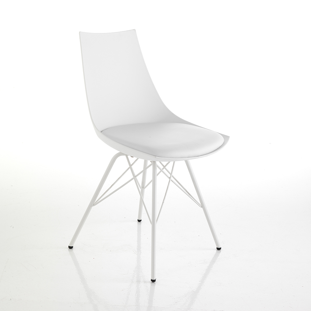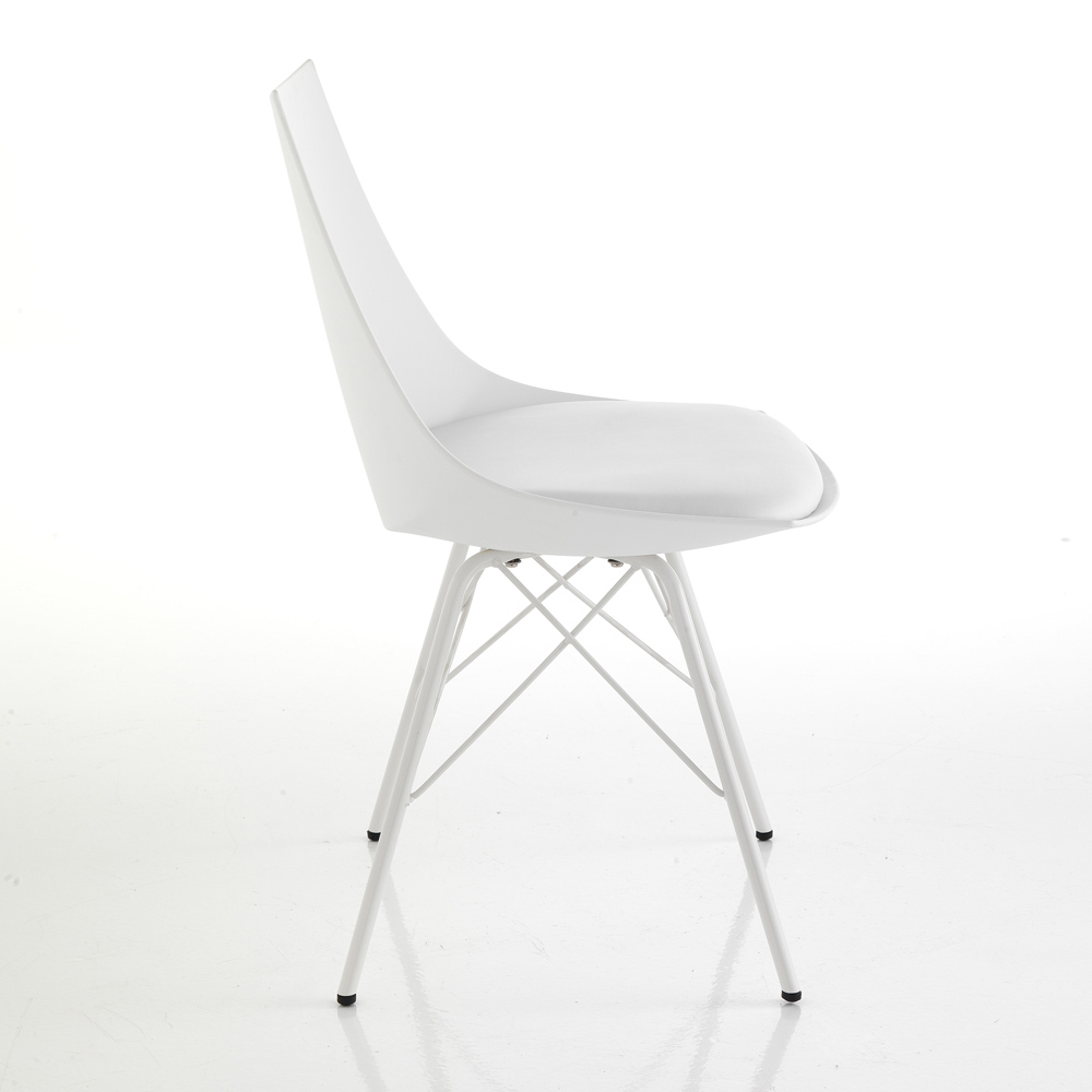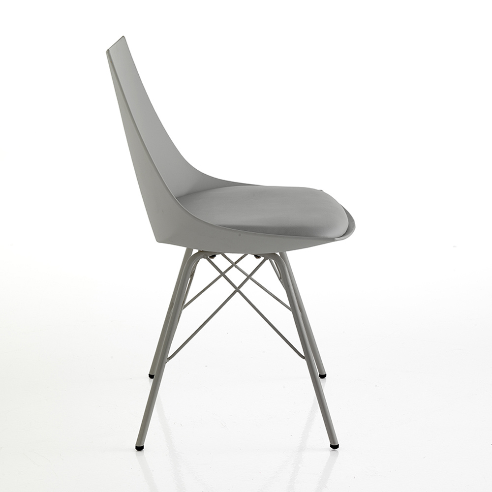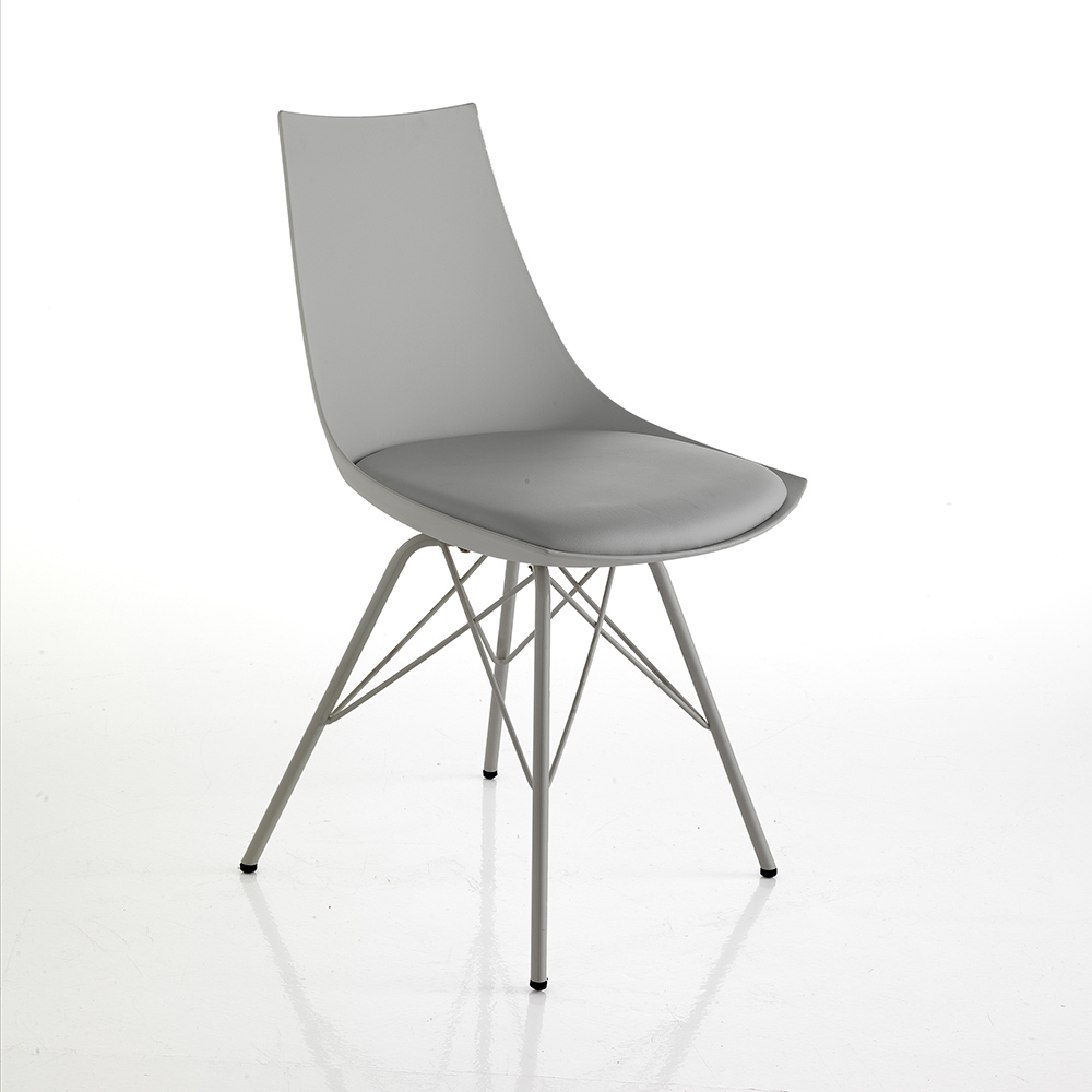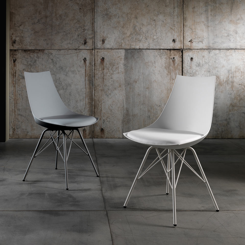 Scaun pentru sufragerie sau bucatarie cu structura din metal vopsit lucios , carcasa din polipropilena opaca si sezut captusit imbracat in piele sintetica . O completare cu un design inovator si rafinat, ideala pentru situatiile de mobilier modern care necesita un plus de personalitate .