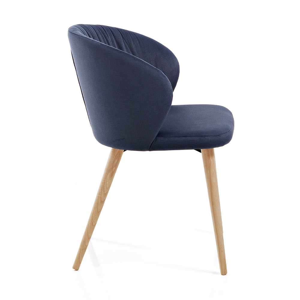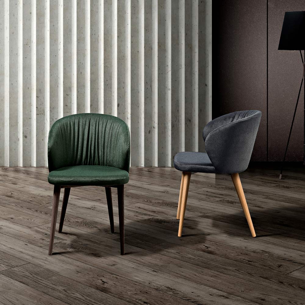 Scaun cadă îmbrăcat în țesătură colorată și picioare conice din frasin de design modern fabricat în Italia.