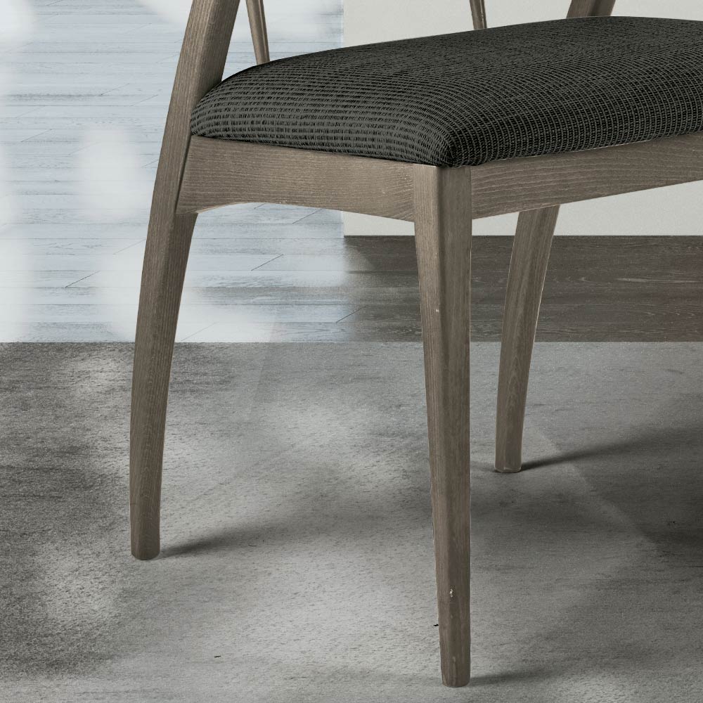 Scaun din lemn cu traverse și șezut căptușit din material Made in Italy