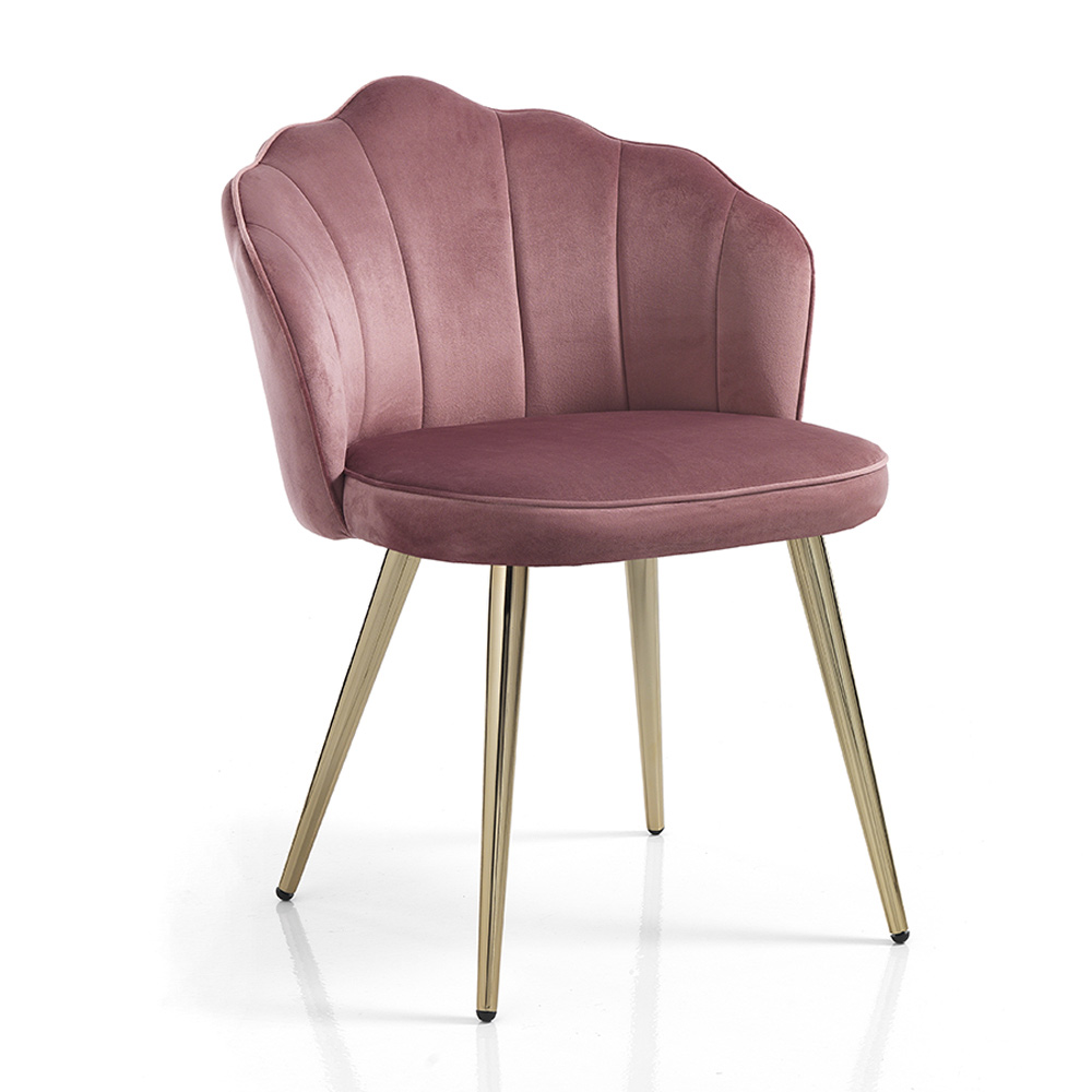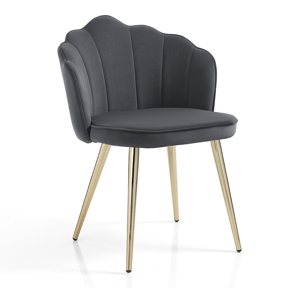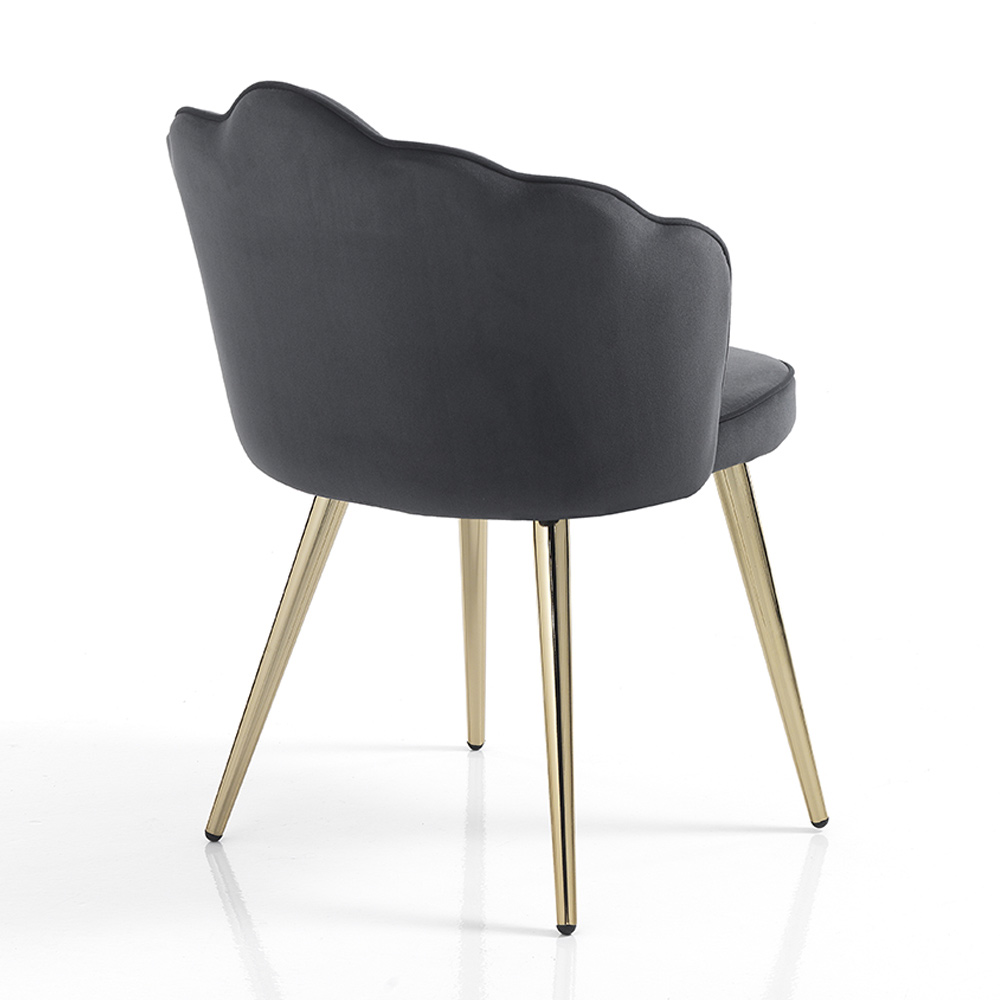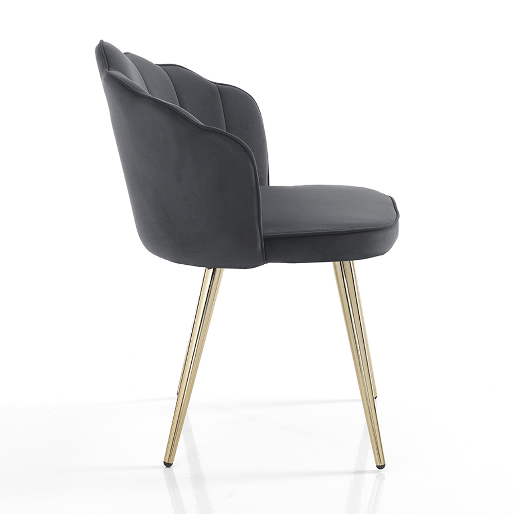 Scaun de sufragerie din stofa cu efect de catifea si metal auriu lucios, 4 bucati.