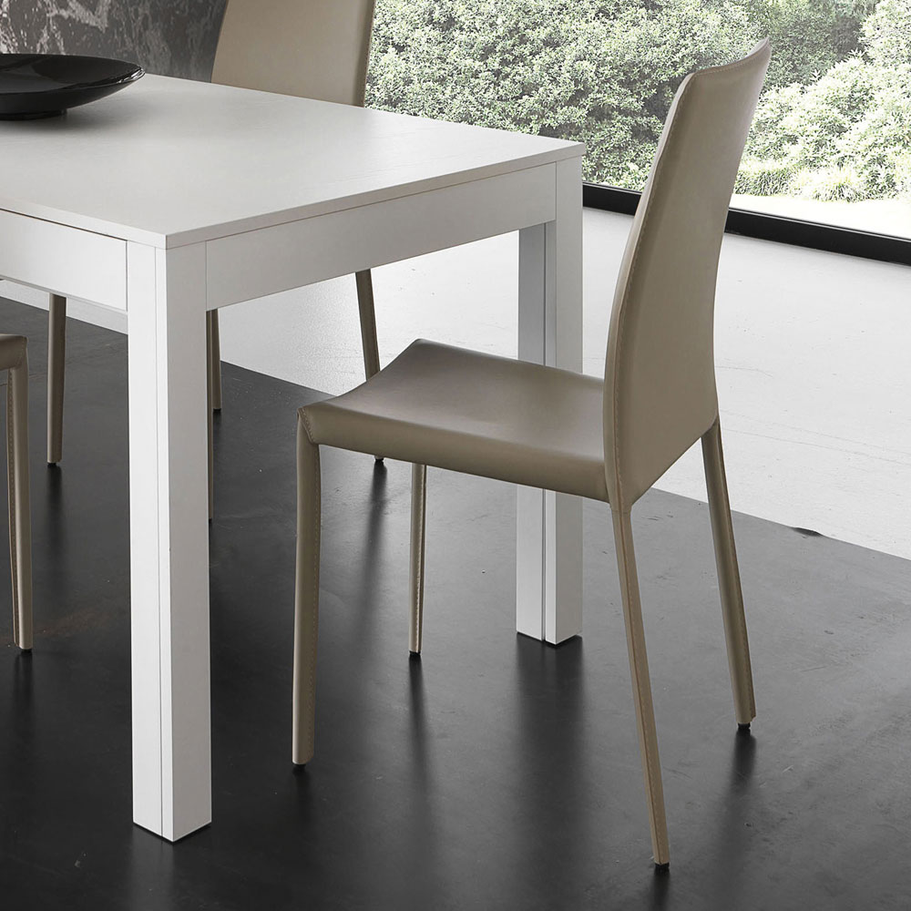 Silueta sa este usoara si zvelta si are o forma primitoare care face scaunul deosebit de confortabil . Materialele folosite completează estetica finală a produsului prin infuzarea unui caracter rafinat datorită utilizării imitației de piele, în timp ce alegerea metalului pentru structură îi subliniază soliditatea și robustețea.