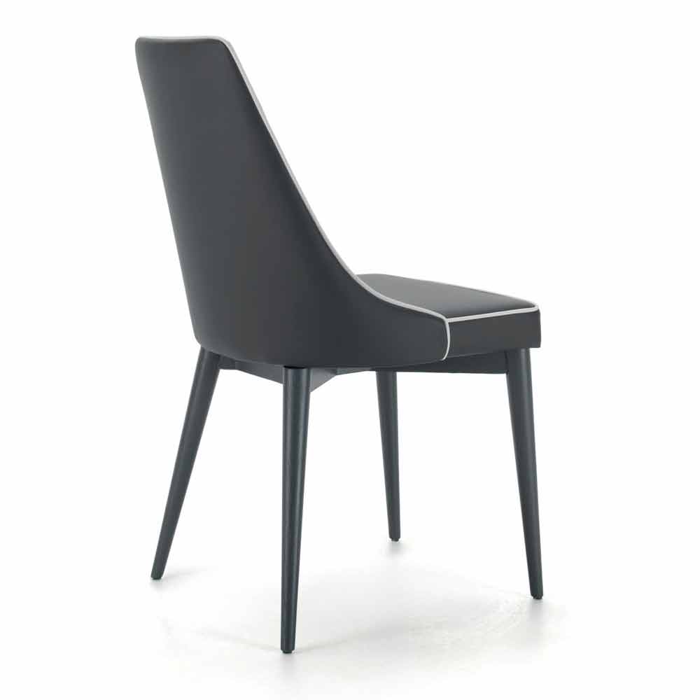 Scaun captusit de lux cu baza din otel grafit si sezut din piele ecologica cu tuburi albe; lucrate manual in Italia.