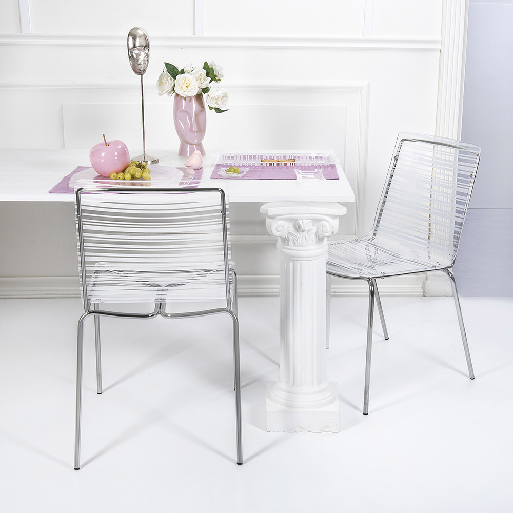 Scaun de sufragerie realizat in intregime in Italia cu carcasa din plexiglas si picioare din fier cromat care il fac si usor de stivuit. Caracterizata printr-un design simplu si curat , aceasta piesa de mobilier este versatila si contemporana datorita si materialelor inovatoare folosite care ii evidentiaza eleganta geometrica .