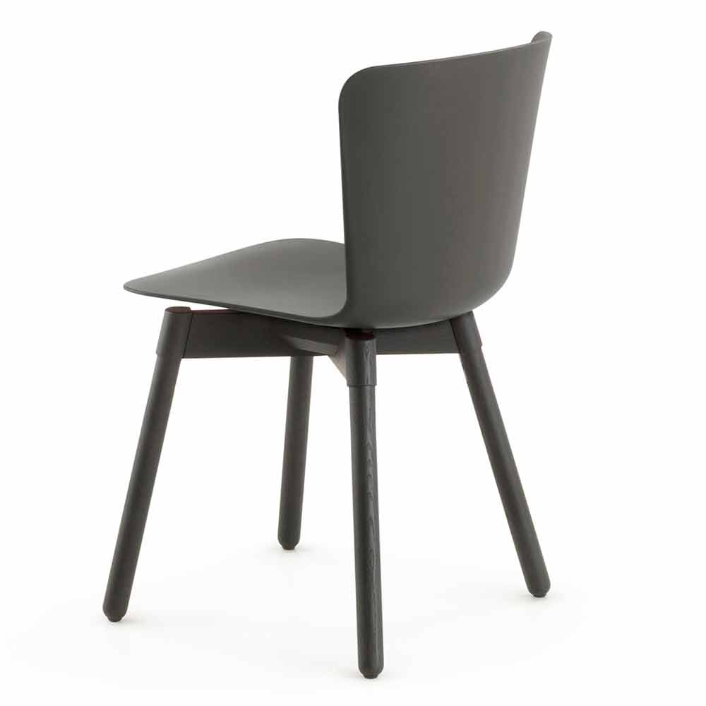 Scaun inovator pentru sufragerie sau bucătărie fabricat în Italia cu scaun și spătar din polipropilenă și structură din stejar negru .
