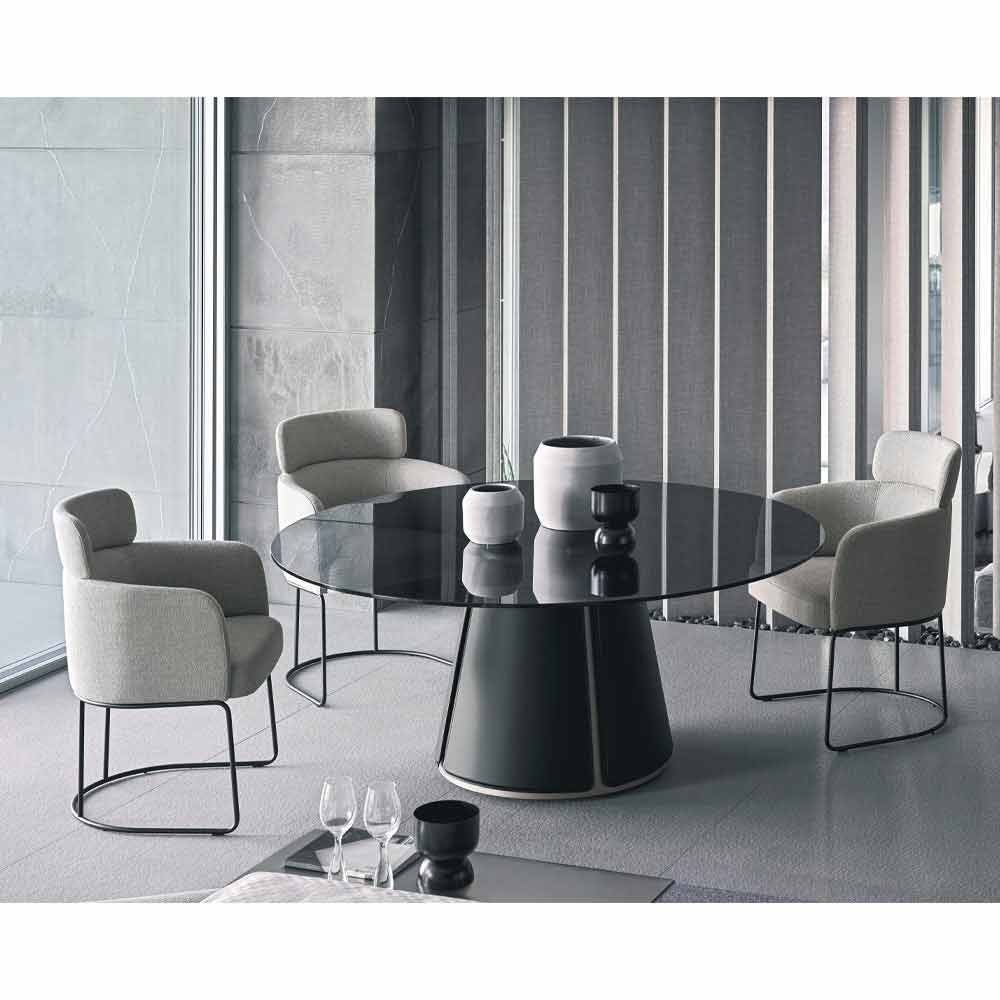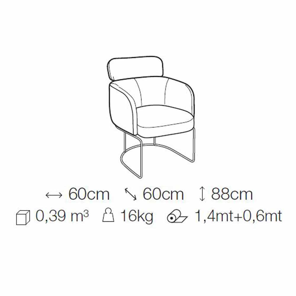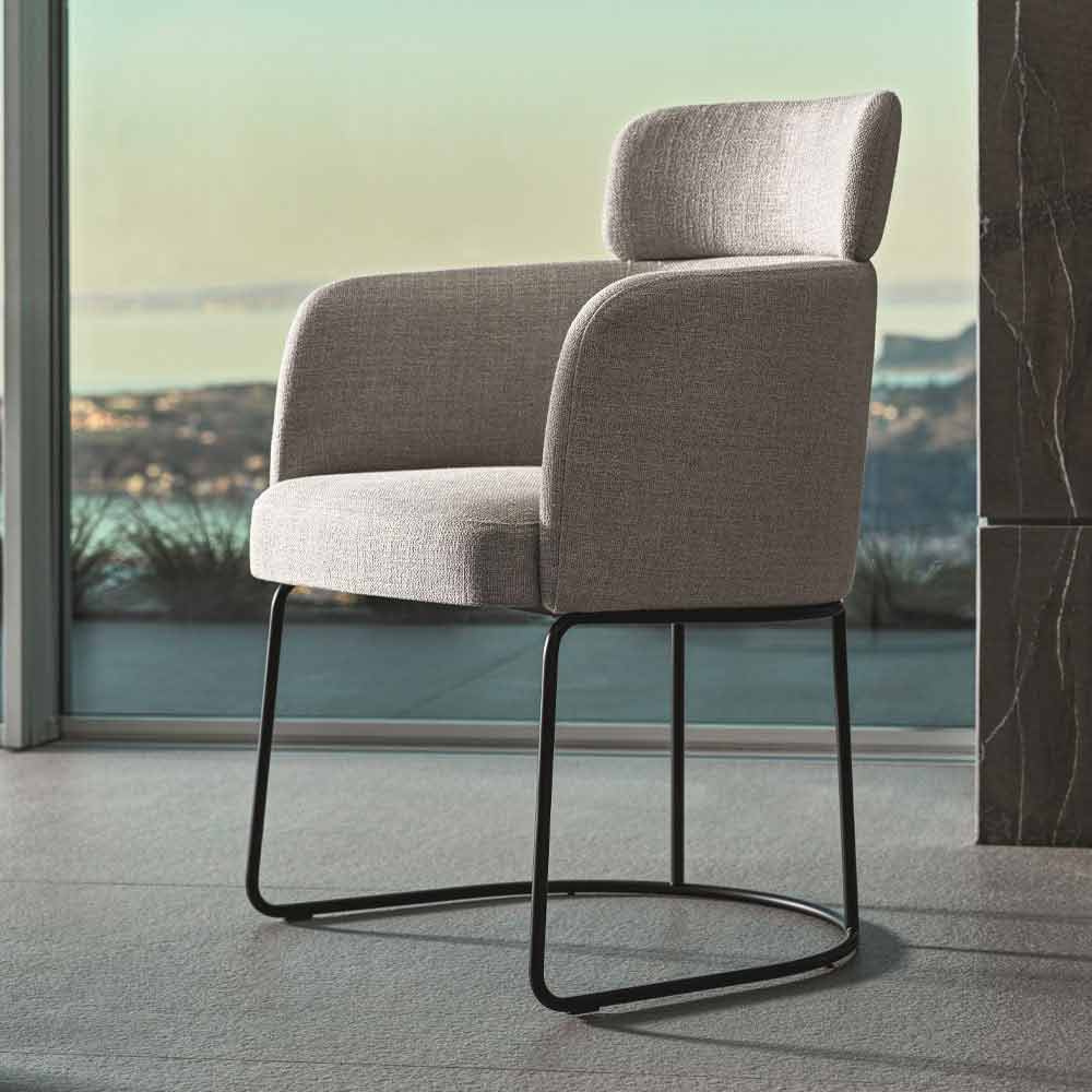 Scaun tapițat în țesătură cu bază metalică de înaltă calitate Made in Italy.