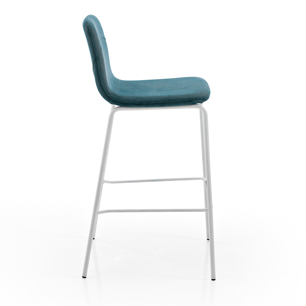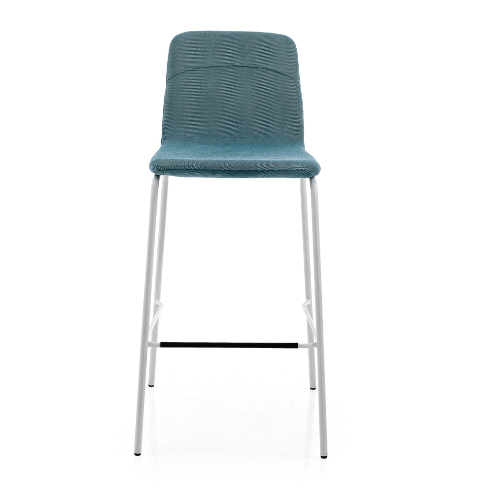 Scaun inalt de bucatarie fabricat in Italia cu structura metalica din tub rotund (diametru 16 mm) complet cu suport practic pentru picioare si scaun imbracat in material textil . Un design funcțional și atemporal, potrivit pentru cei care doresc să creeze un mediu primitor cu nuanțe delicate.