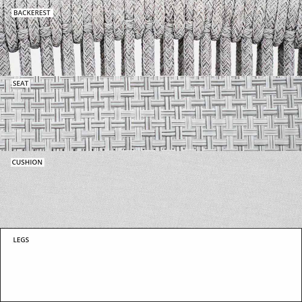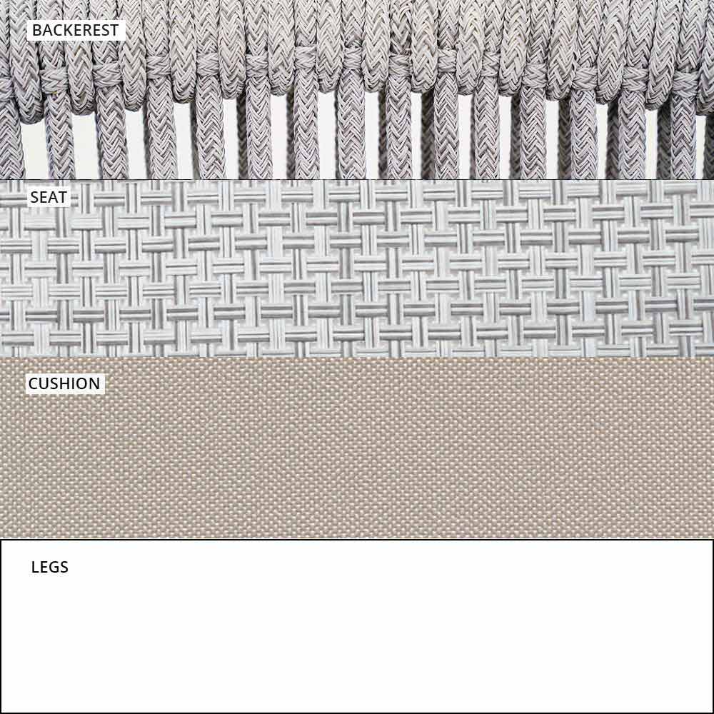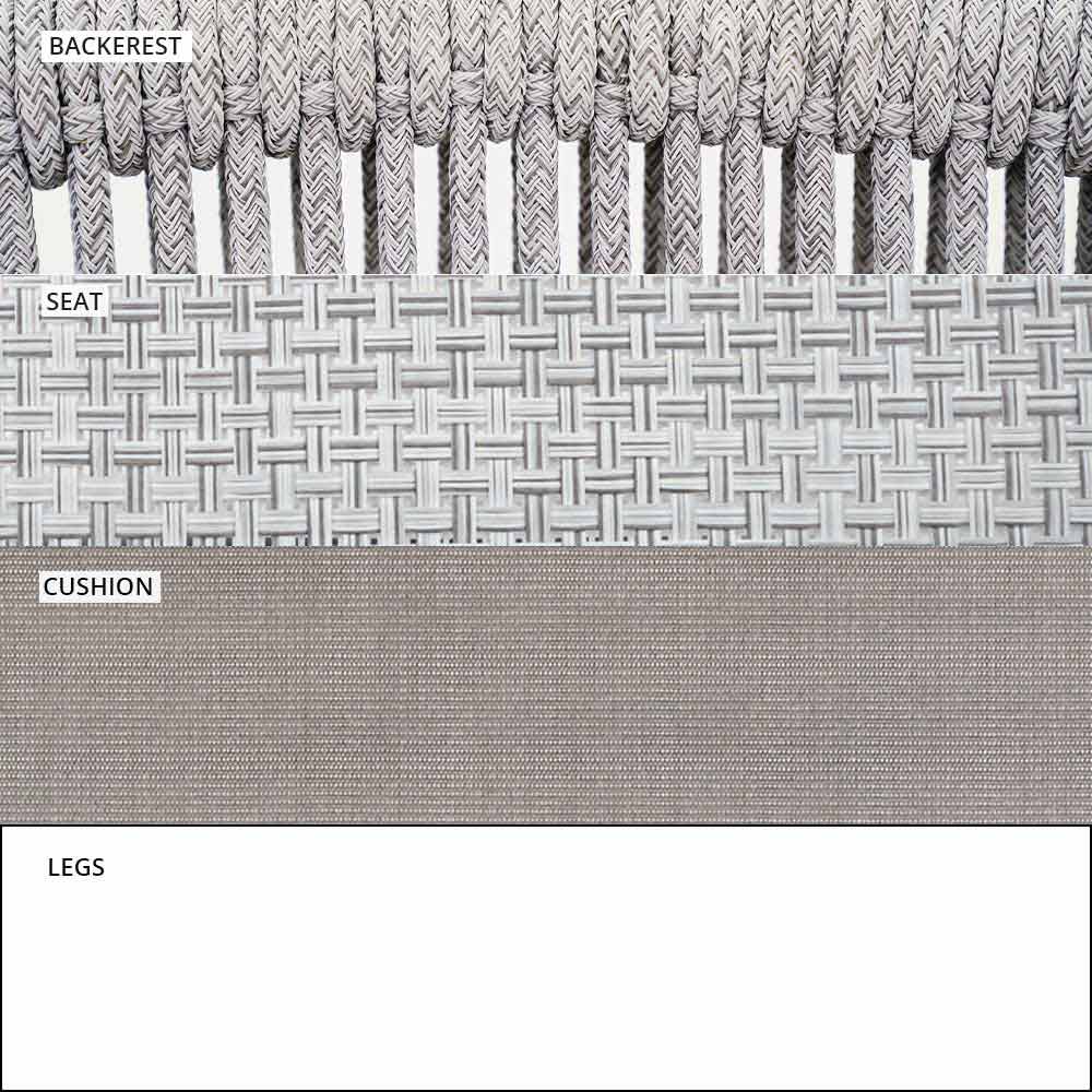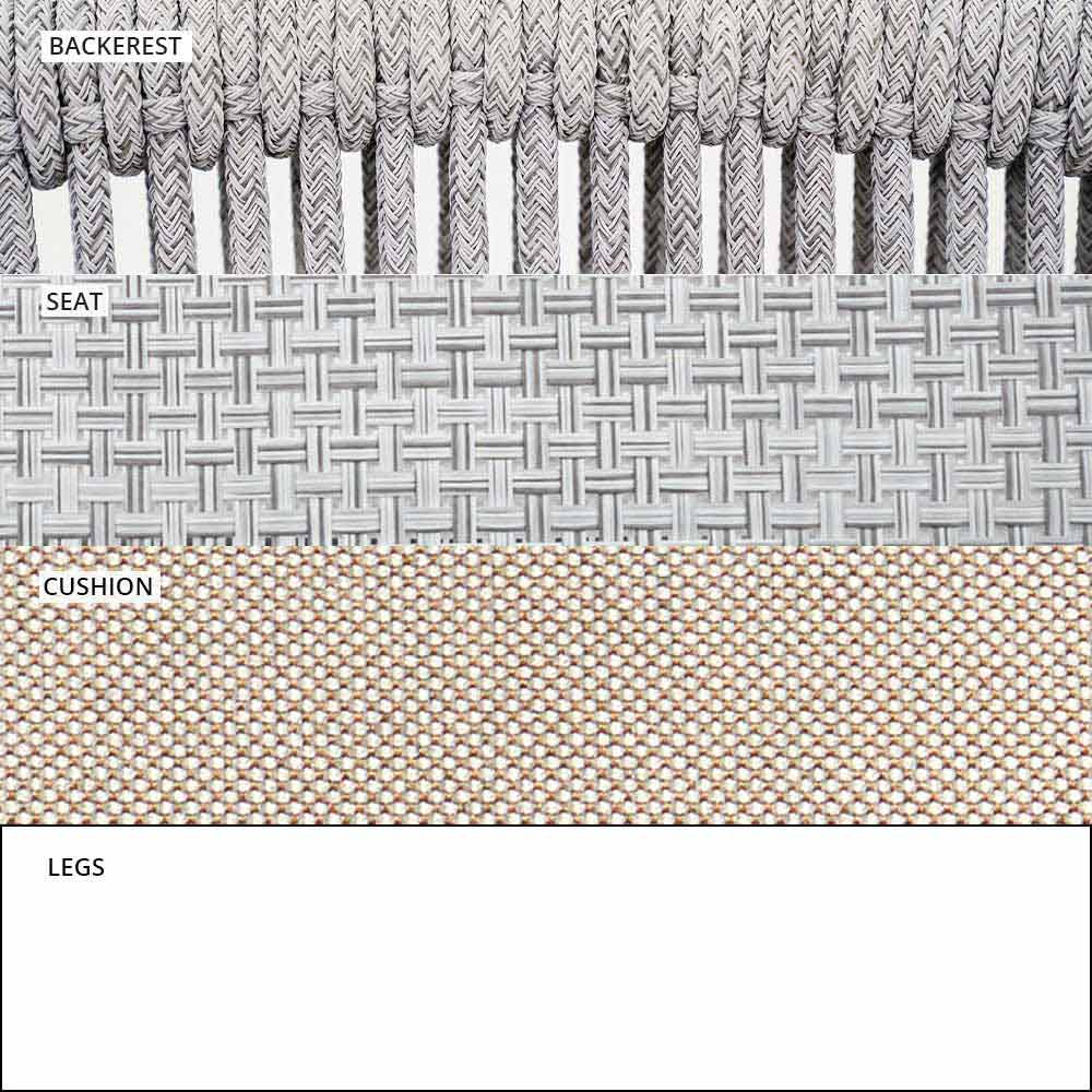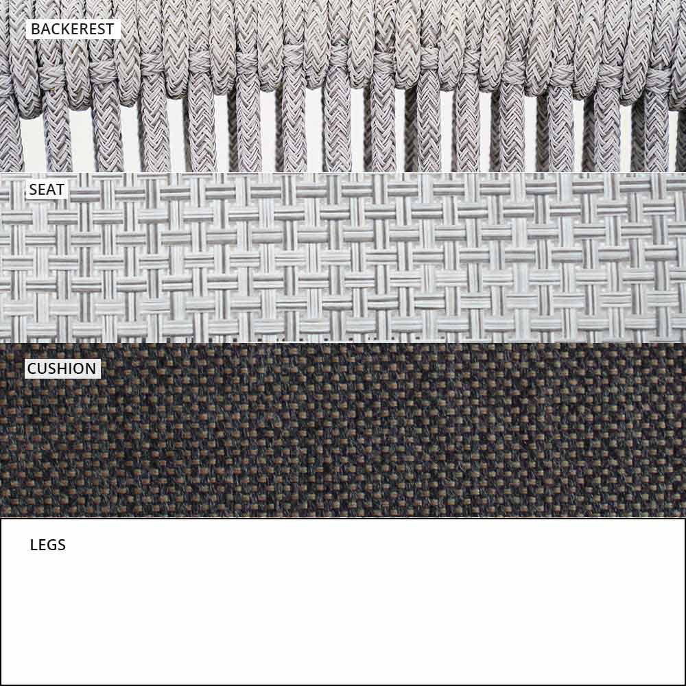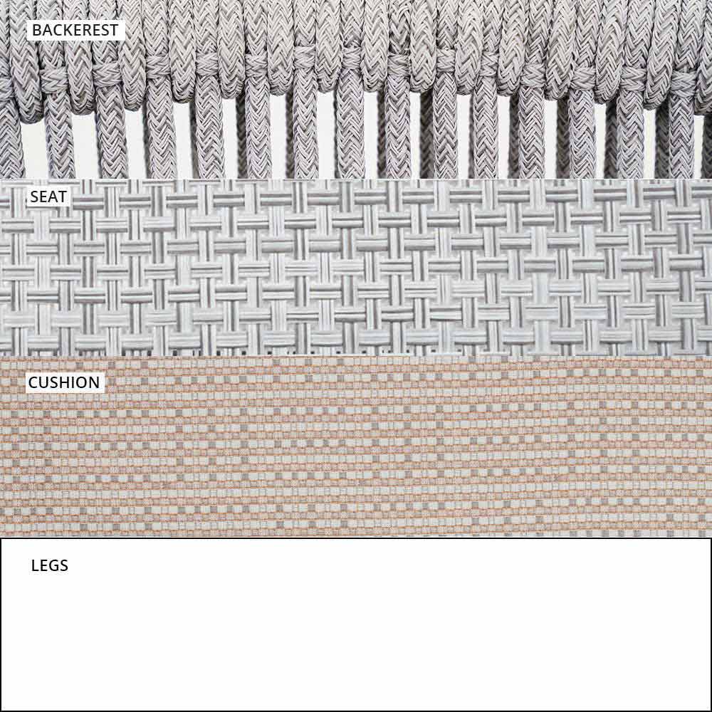 Designul scaunului Smart provine de la echilibrul perfect dintre curba de învăluire care conturează spătarul și verticalitatea dinamică a țesăturii din cordonul sintetic VAR # TEX.
